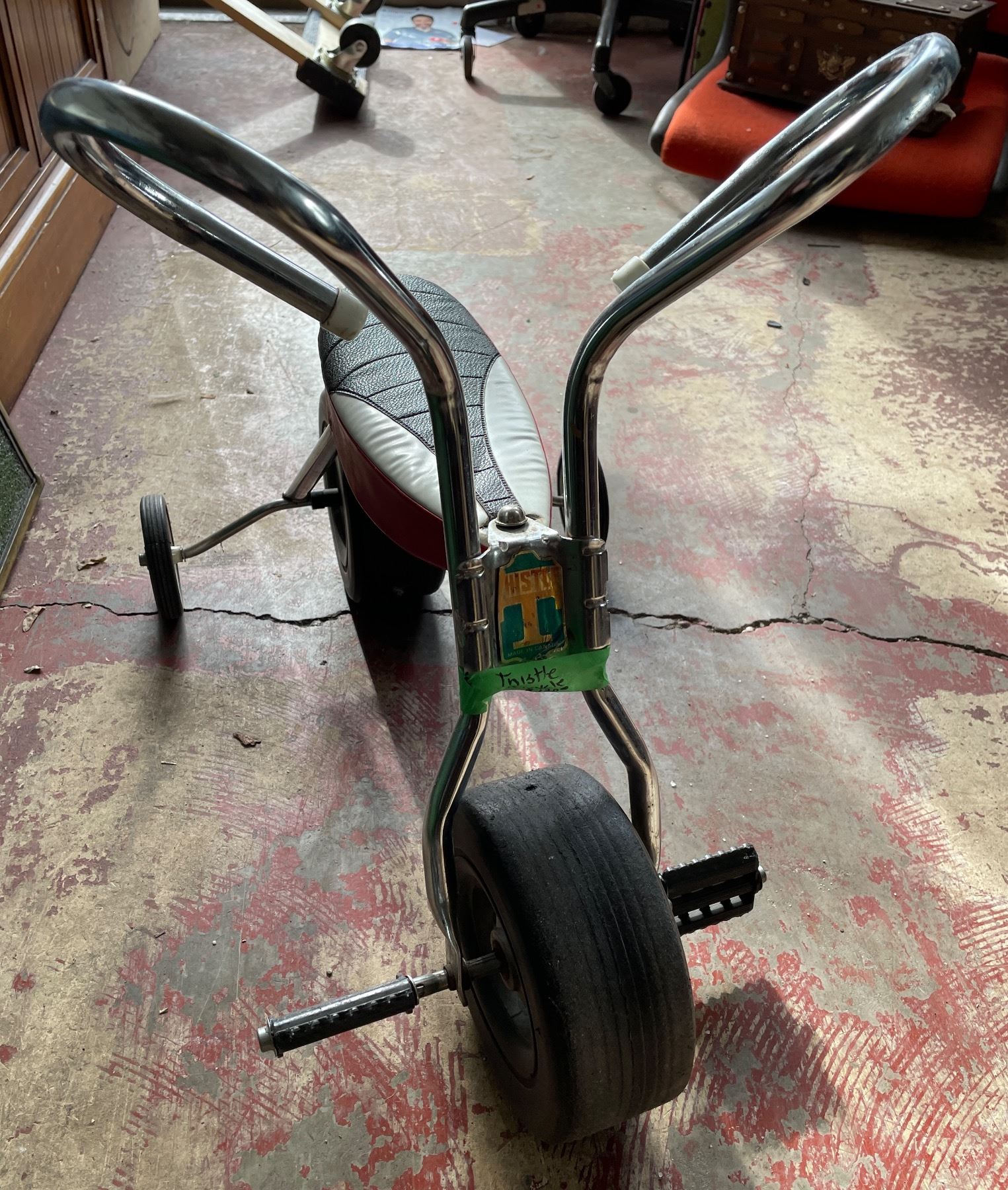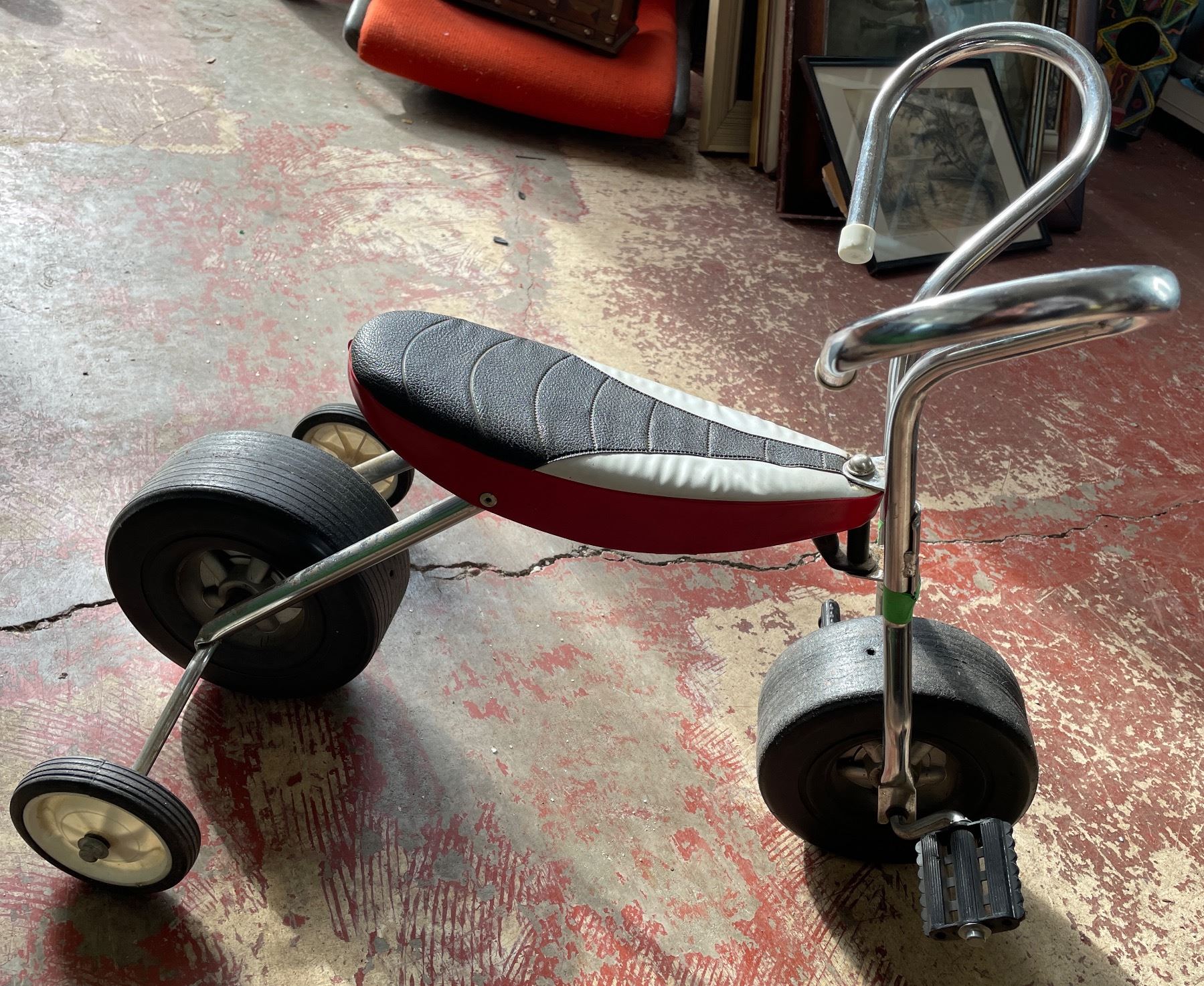 Vintage Tricycle with Chrome Handlebars and Red Seat
