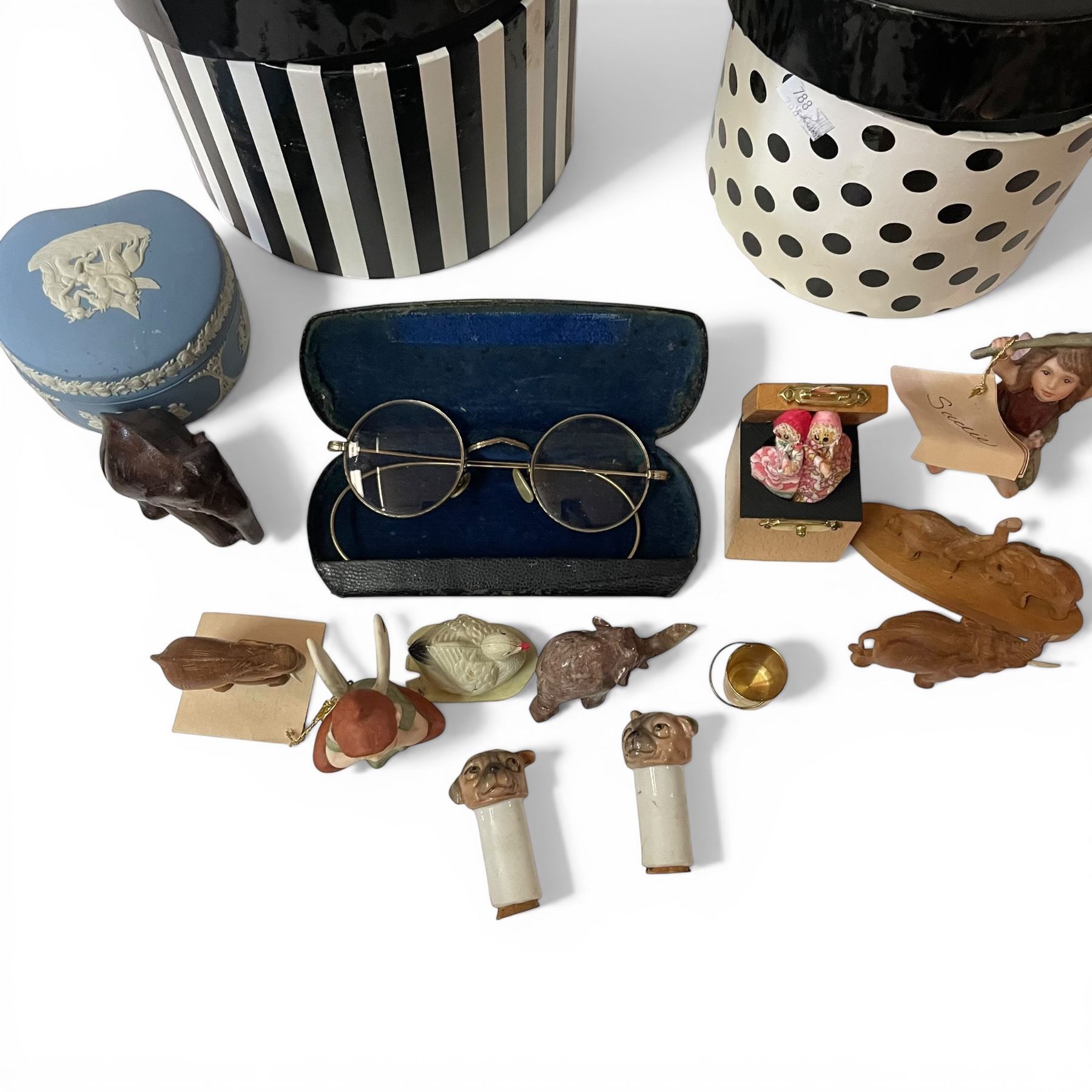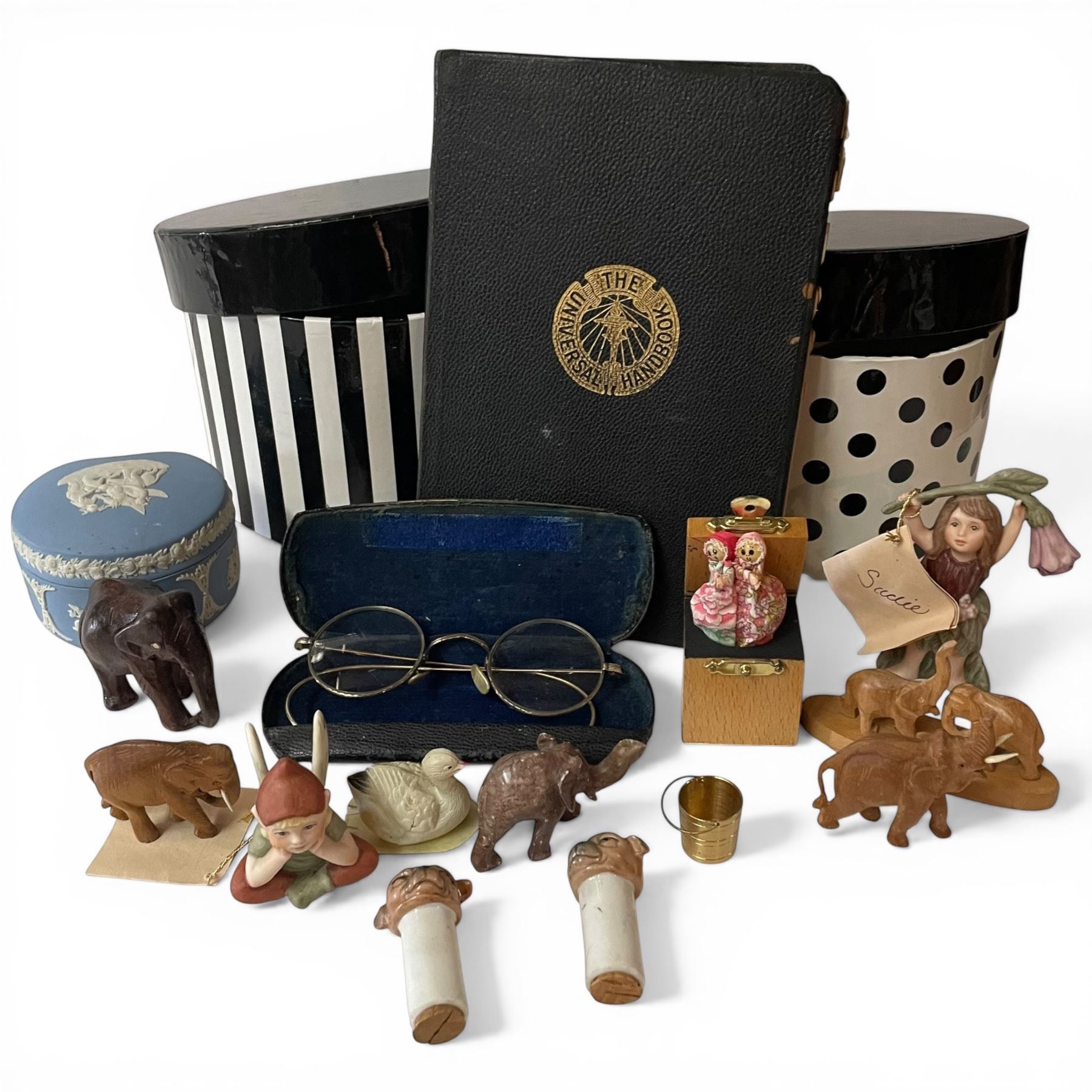 Vintage "Universal Handbook of Necessary Information", Wedgwood Jasperware Trinket Dish & 2 Modern Gift Boxes with Trinkets