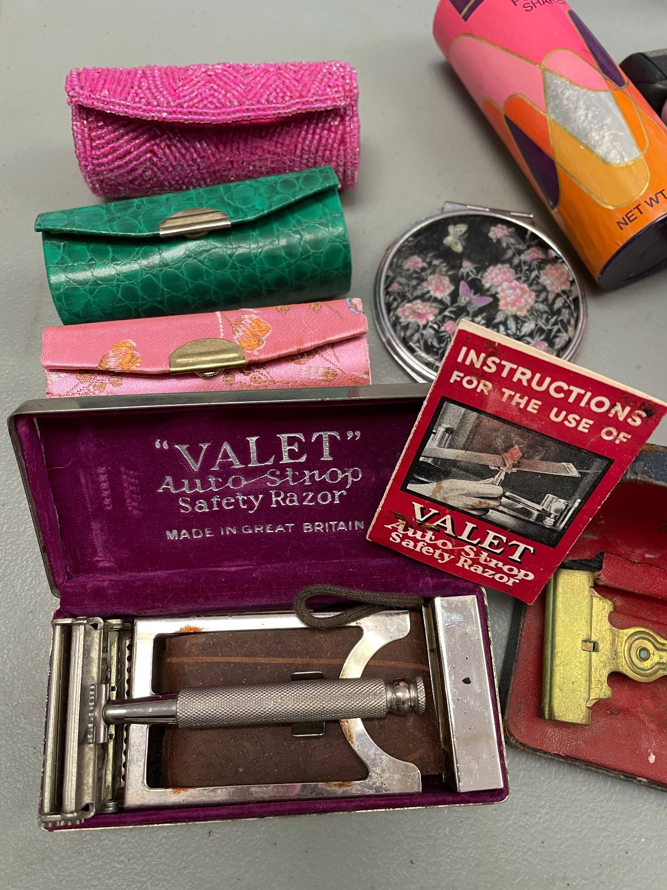 Vintage Valet and Schick Razor, Compact Lipstick Boxes, and Small Coin Purses