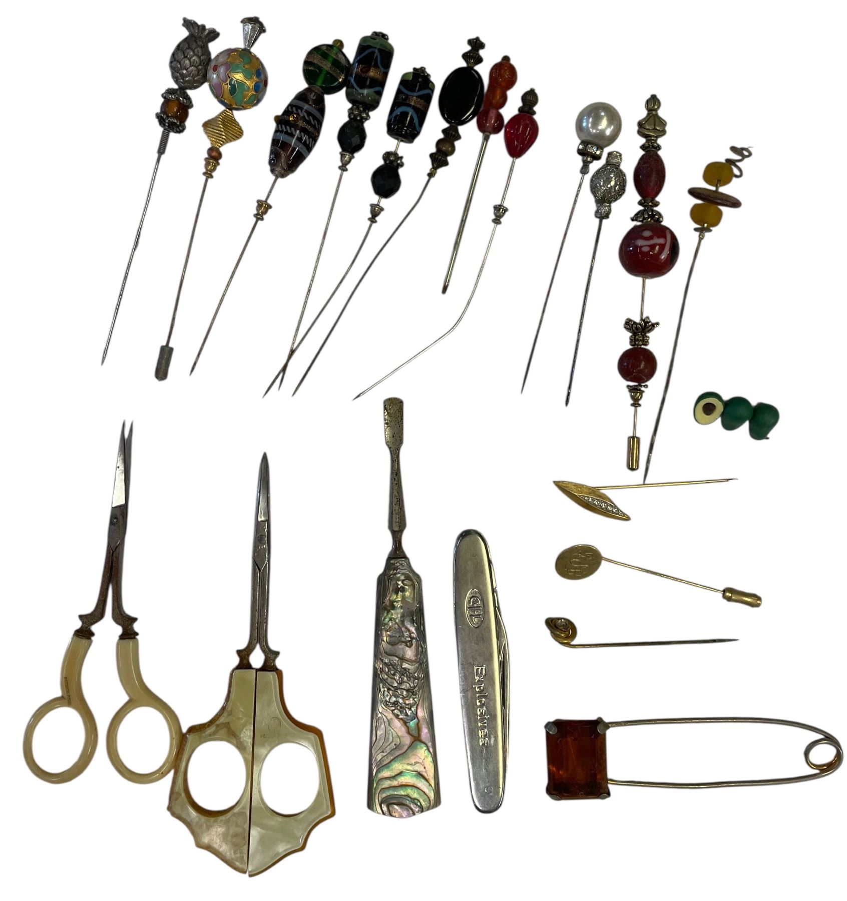 Vintage Variety: Hat Pins, Scissors, & Abalone Finger Nail Cleaner