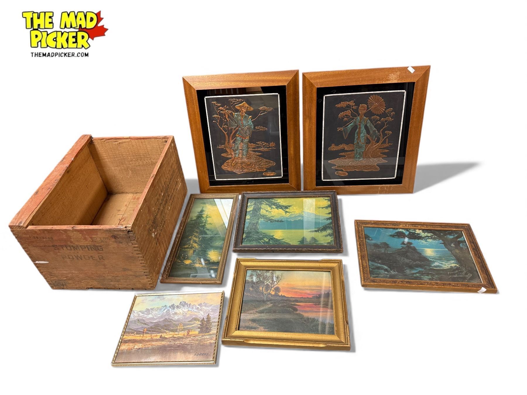 Vintage Variety: Stumping Powder Crate, Art Deco Prints, & Copper Art Works
