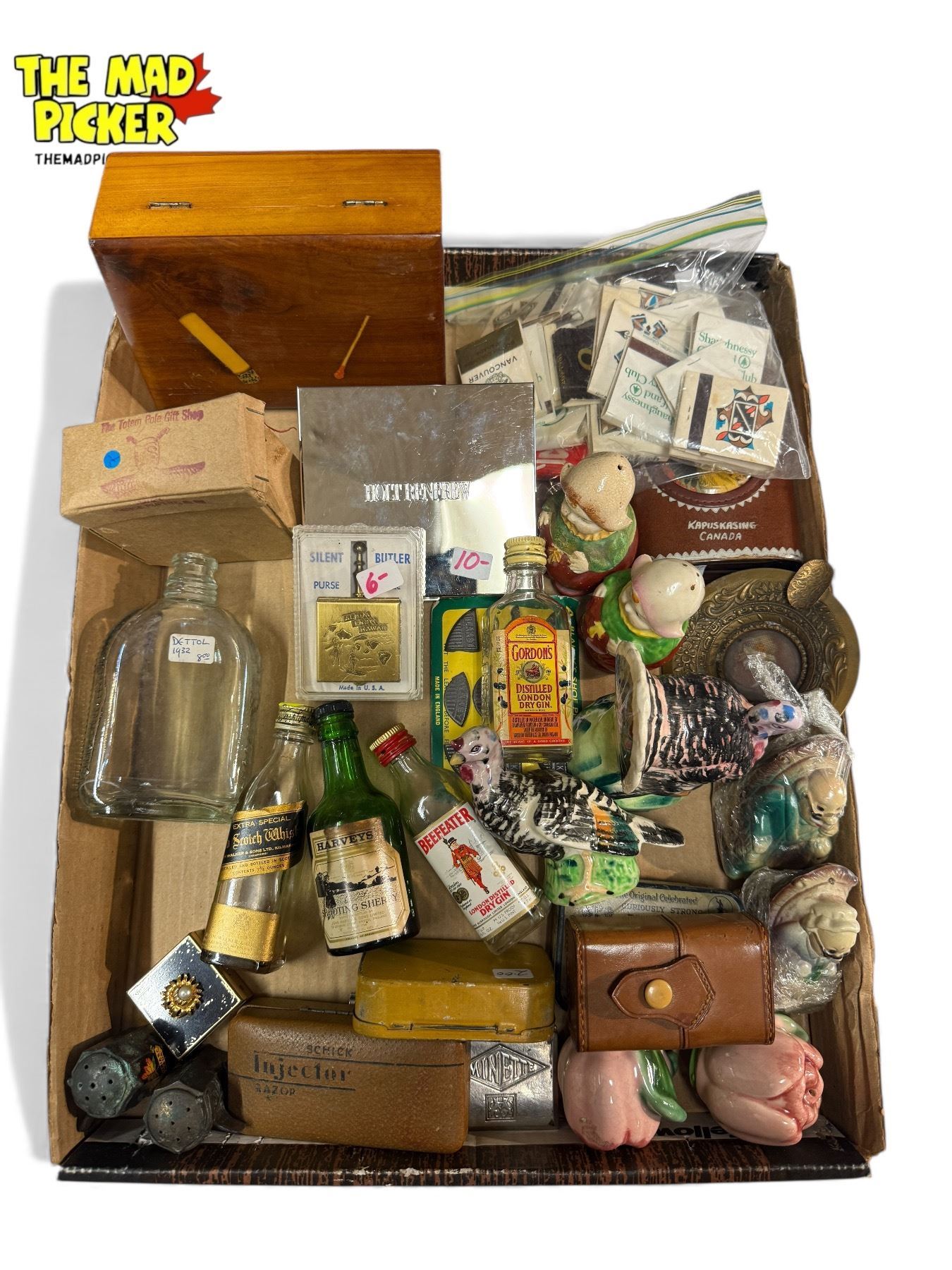 Vintage Variety: Tins, Salt + Pepper Shakers, Bottles, Matches, & More