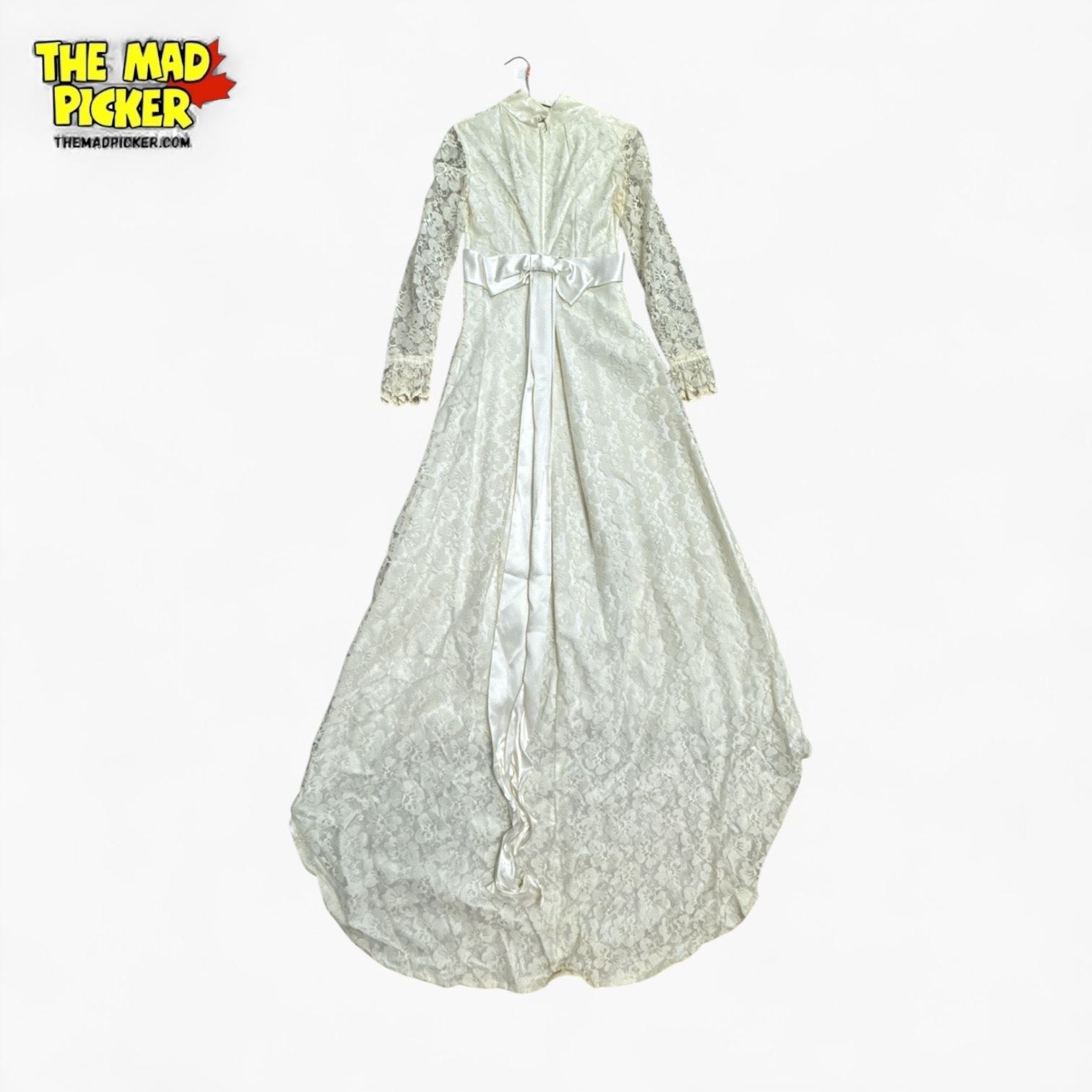 Vintage Victorian Style Wedding Gown with White Lace Design - size S