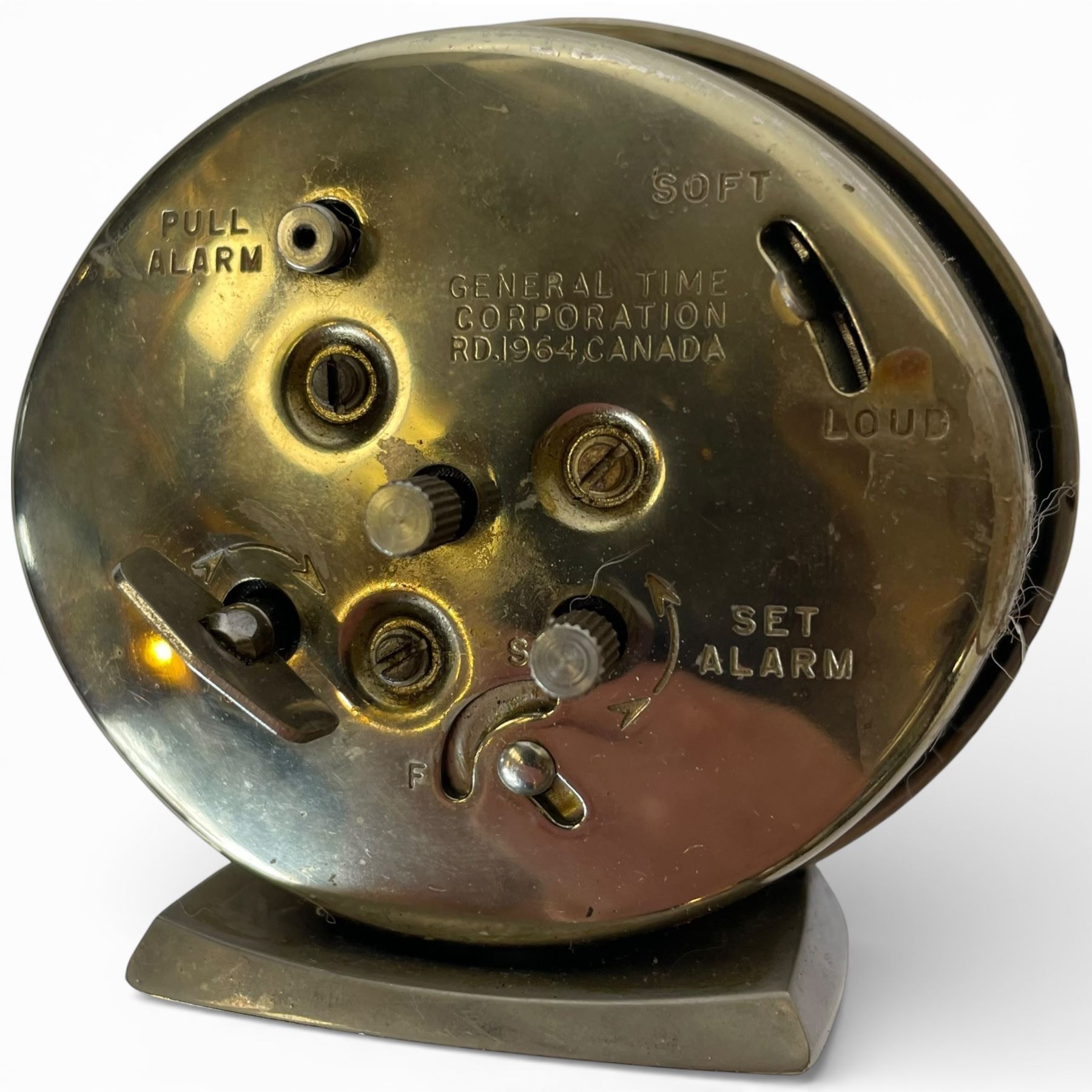 Vintage Westclox Baby Ben alarm clock identified as Style 8, manufactured in the 1960s or early 1970s. Features a brushed brass case and luminous silver dial. Measures 3.25-Inch in height. Classic mid-century design and function. Item is as pictured.