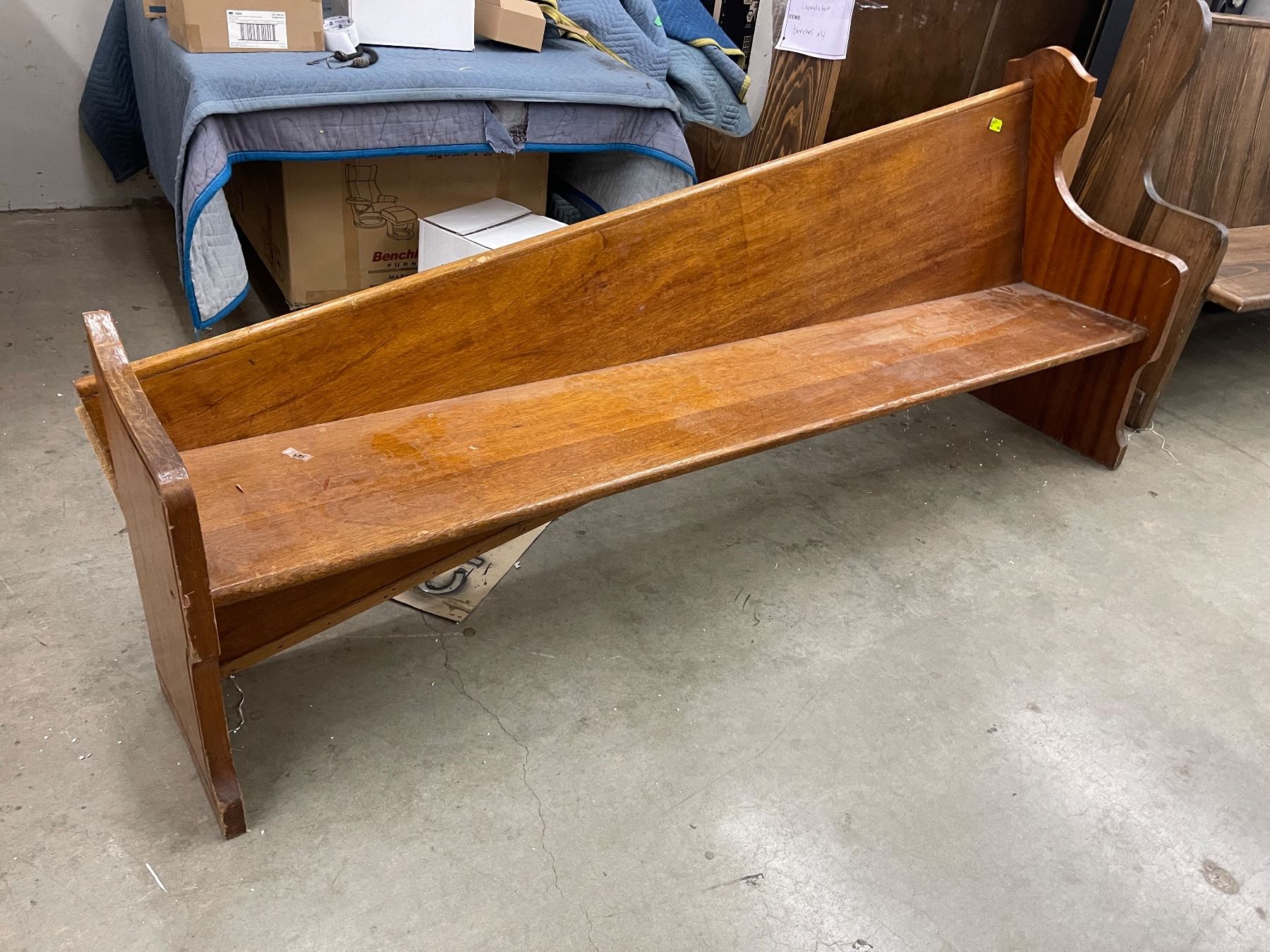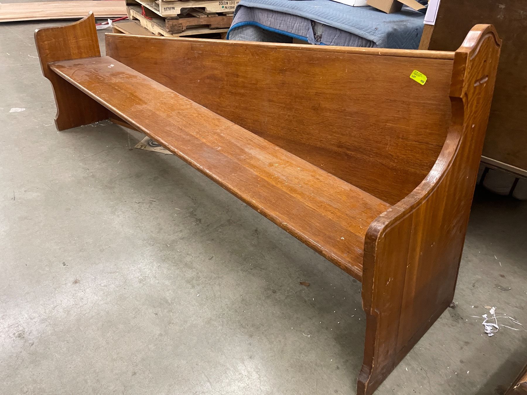 Vintage Wood Church Pew with Carved Cross Detail on the Ends (89" long x 35" tall at the sides) Needs an easy repair
