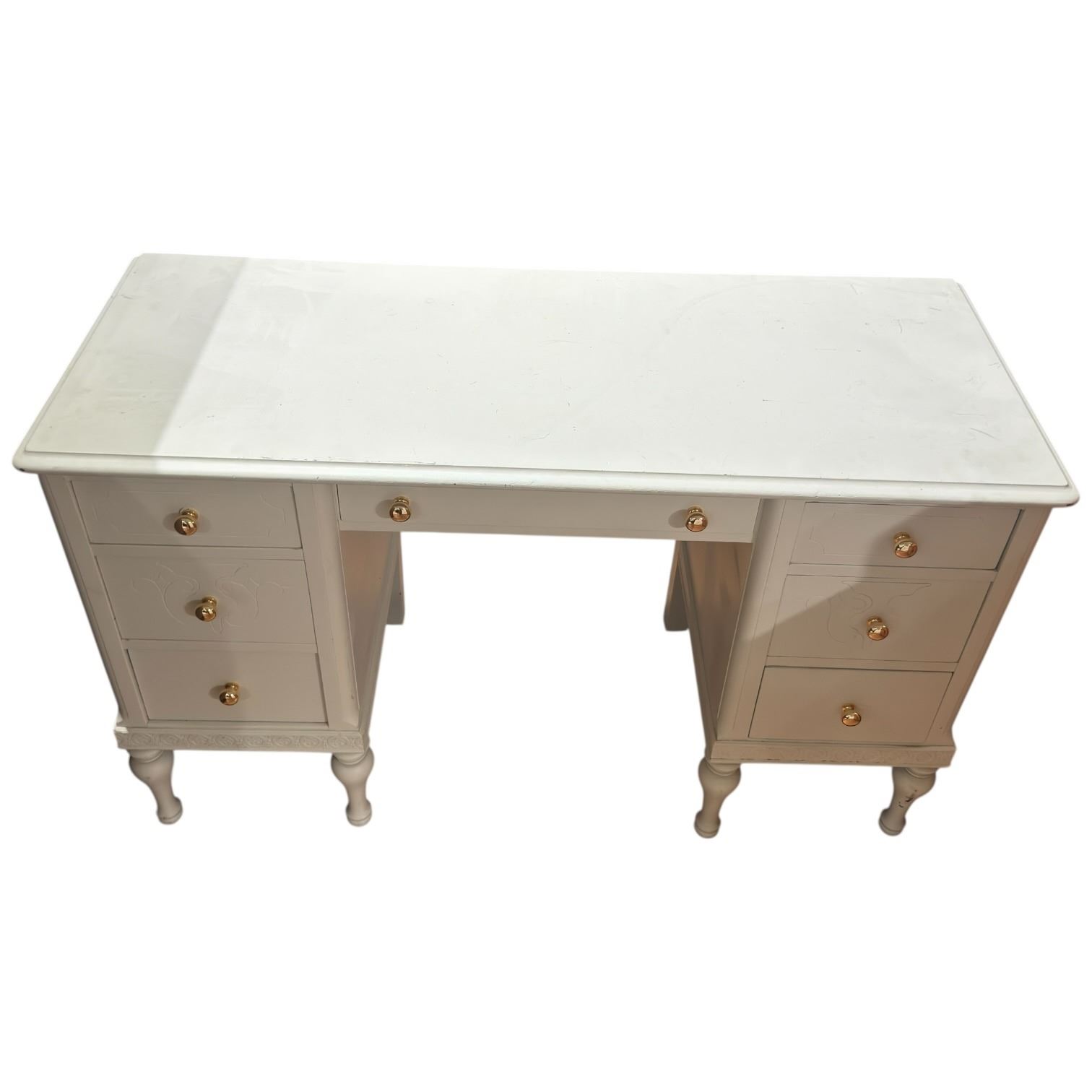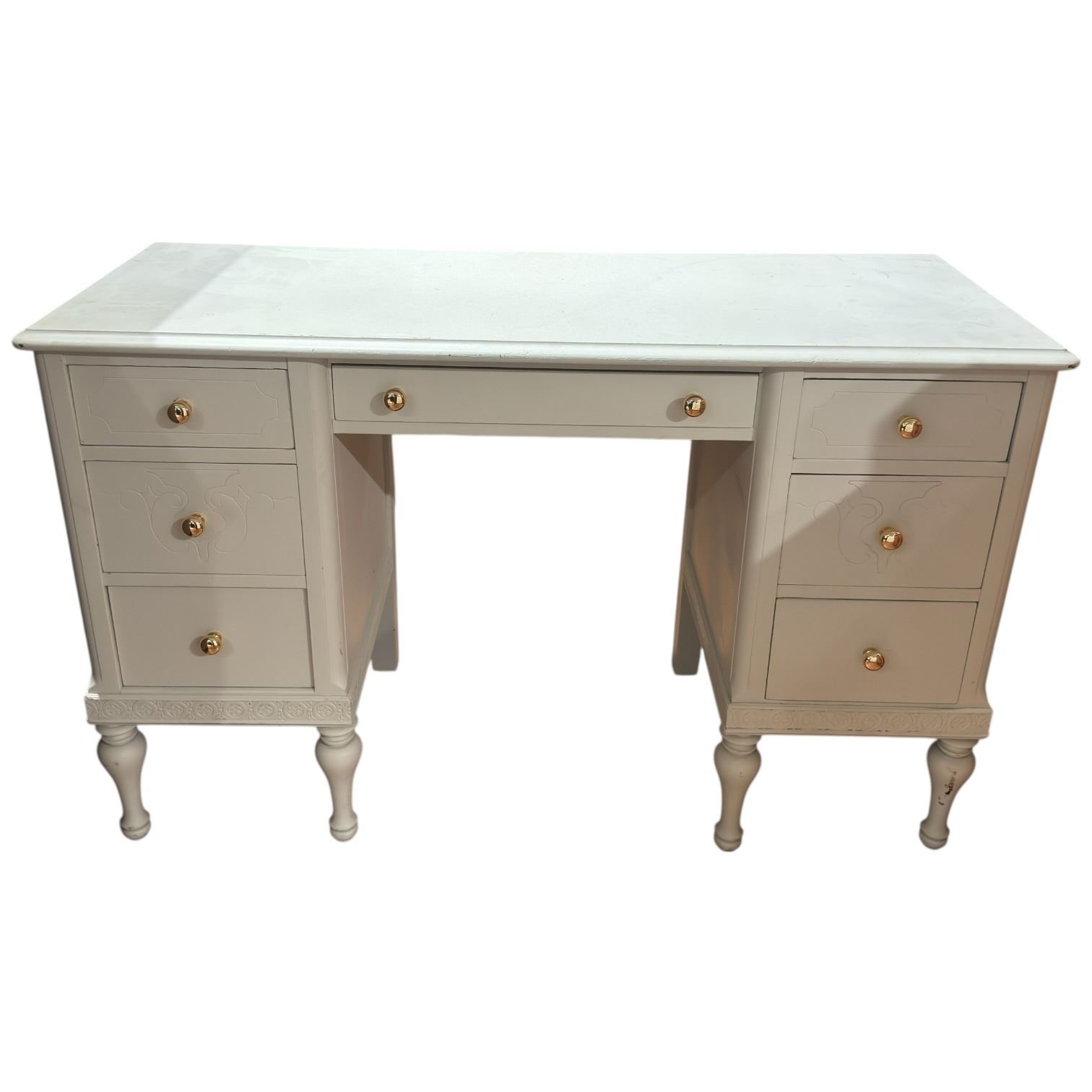 Vintage Wood Desk Painted White (19" x 48" x 30" tall)