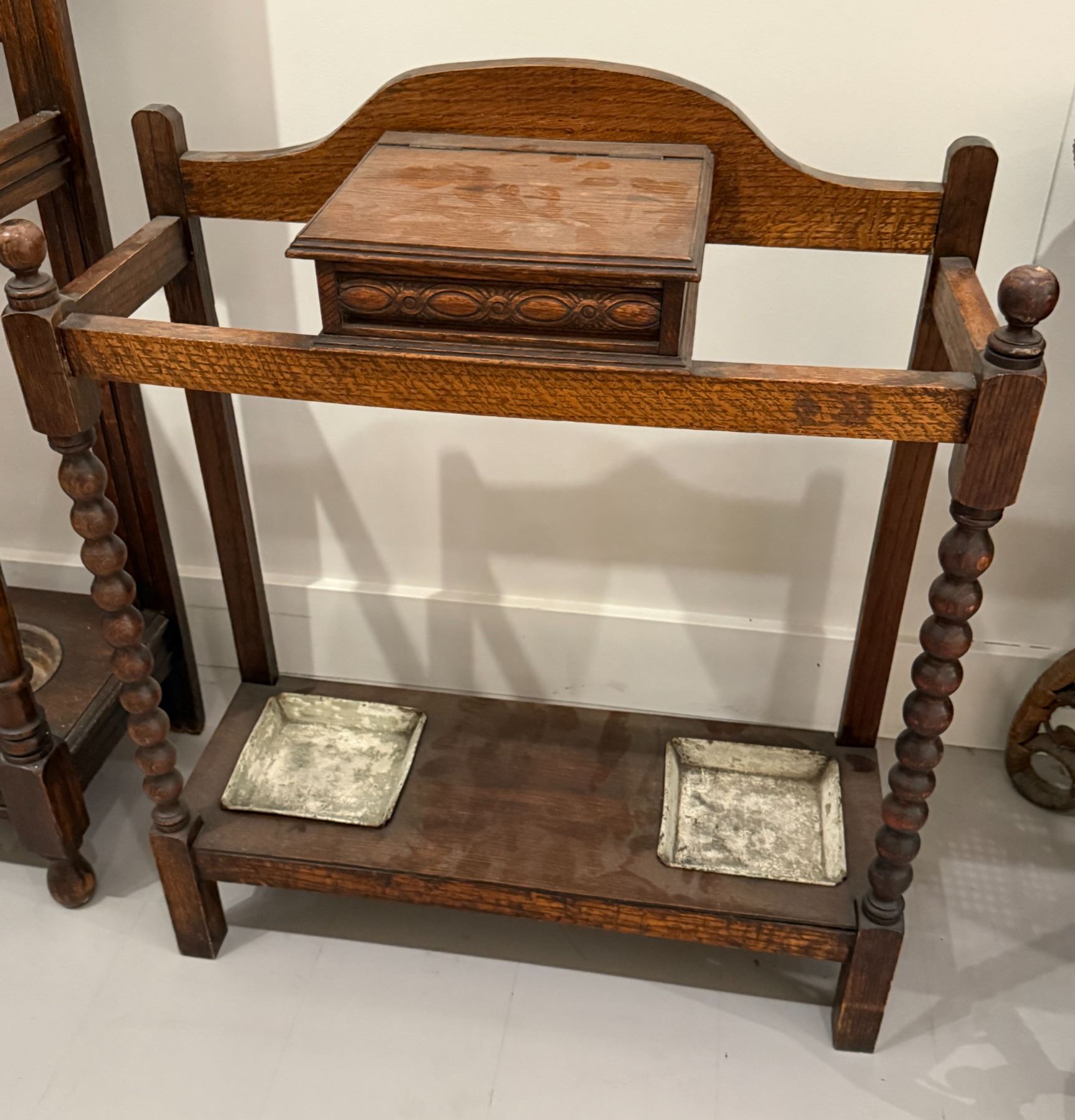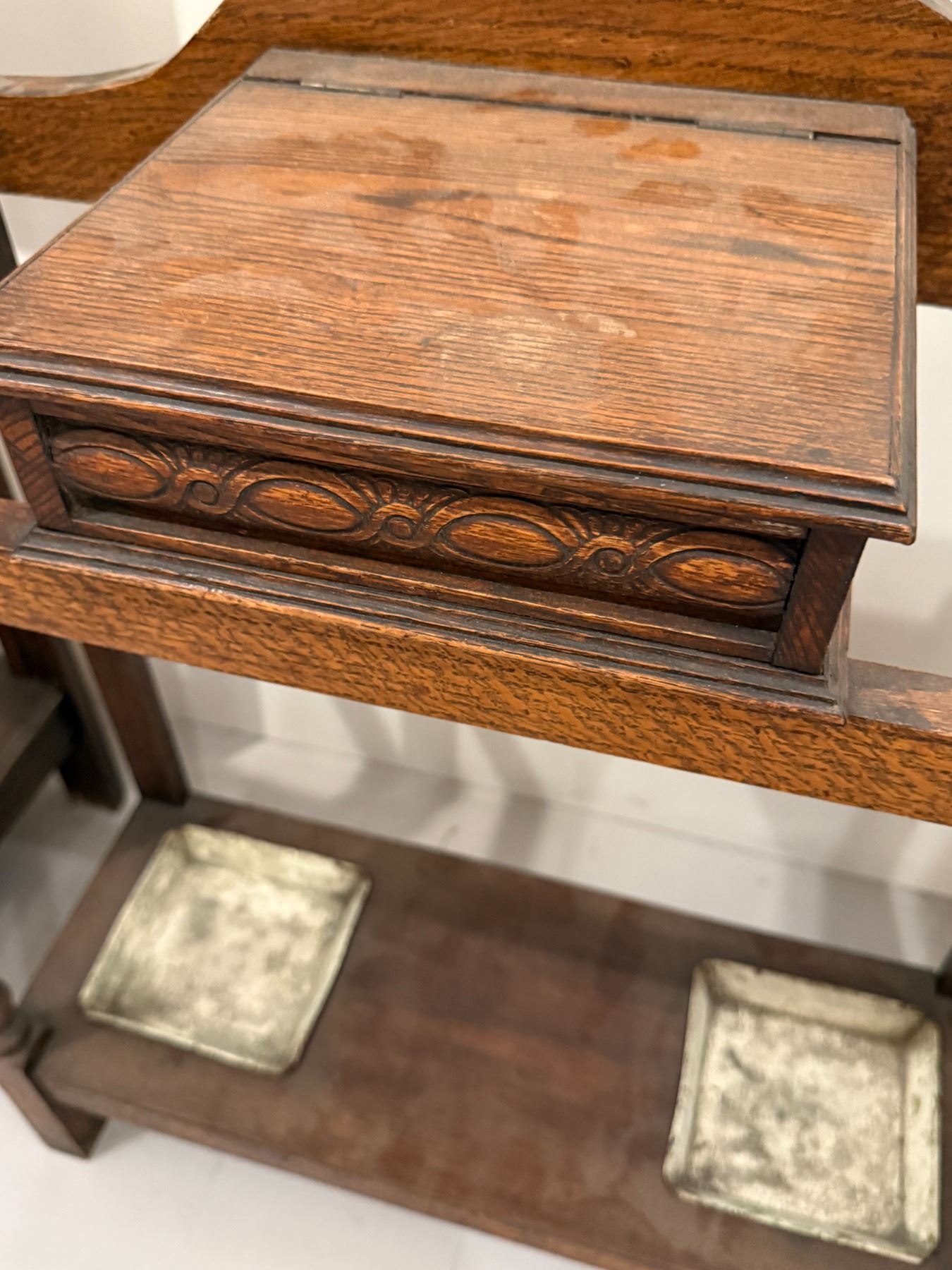 Vintage Wood Umbrella Stand with Flip Top Glove Holder (10" x 26" x 31" tall