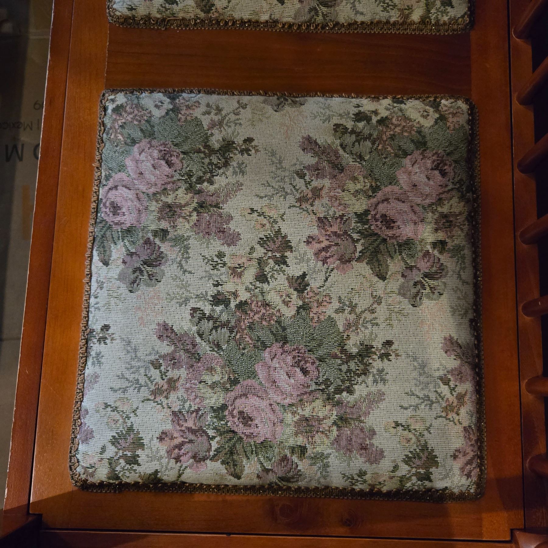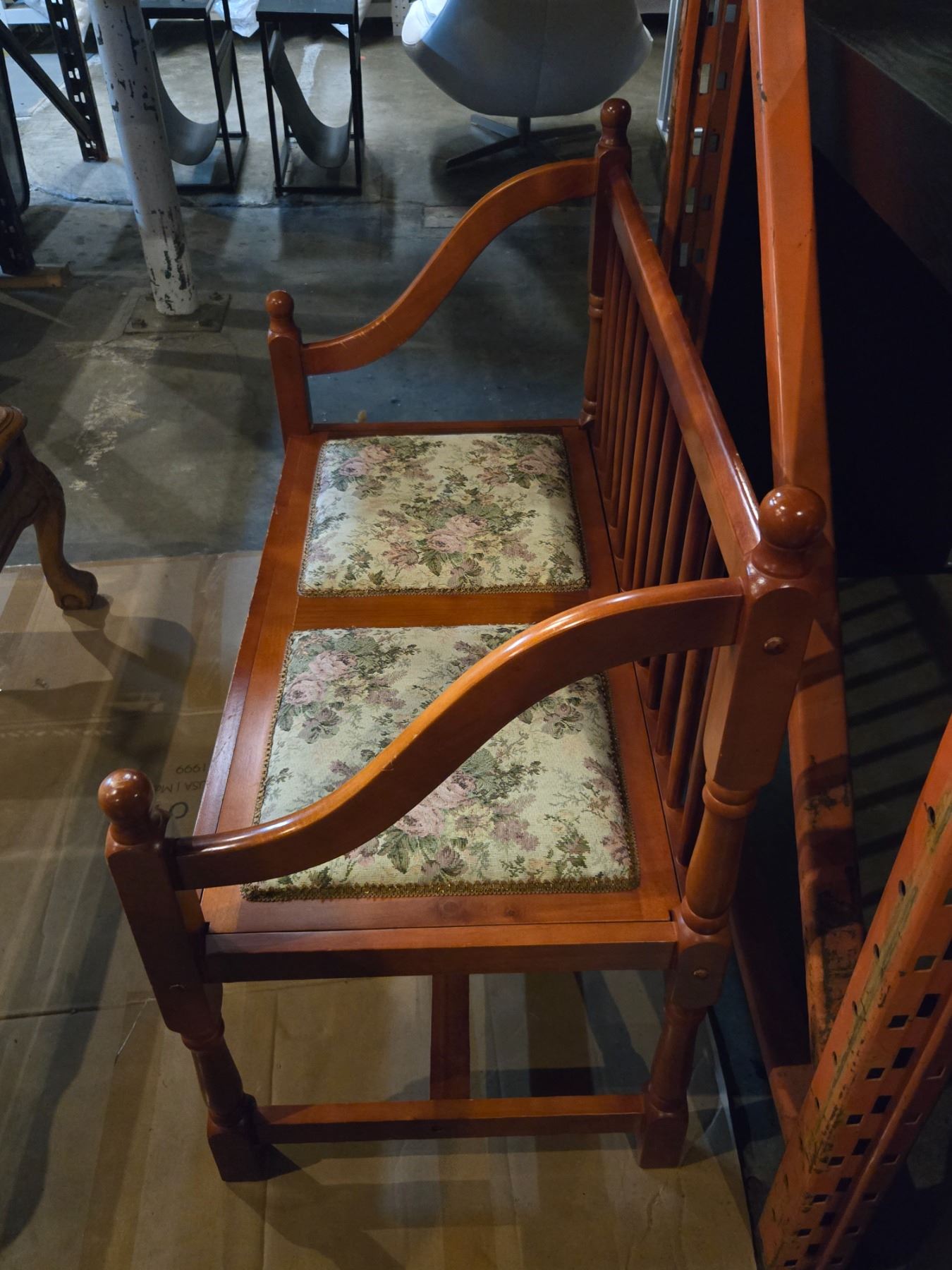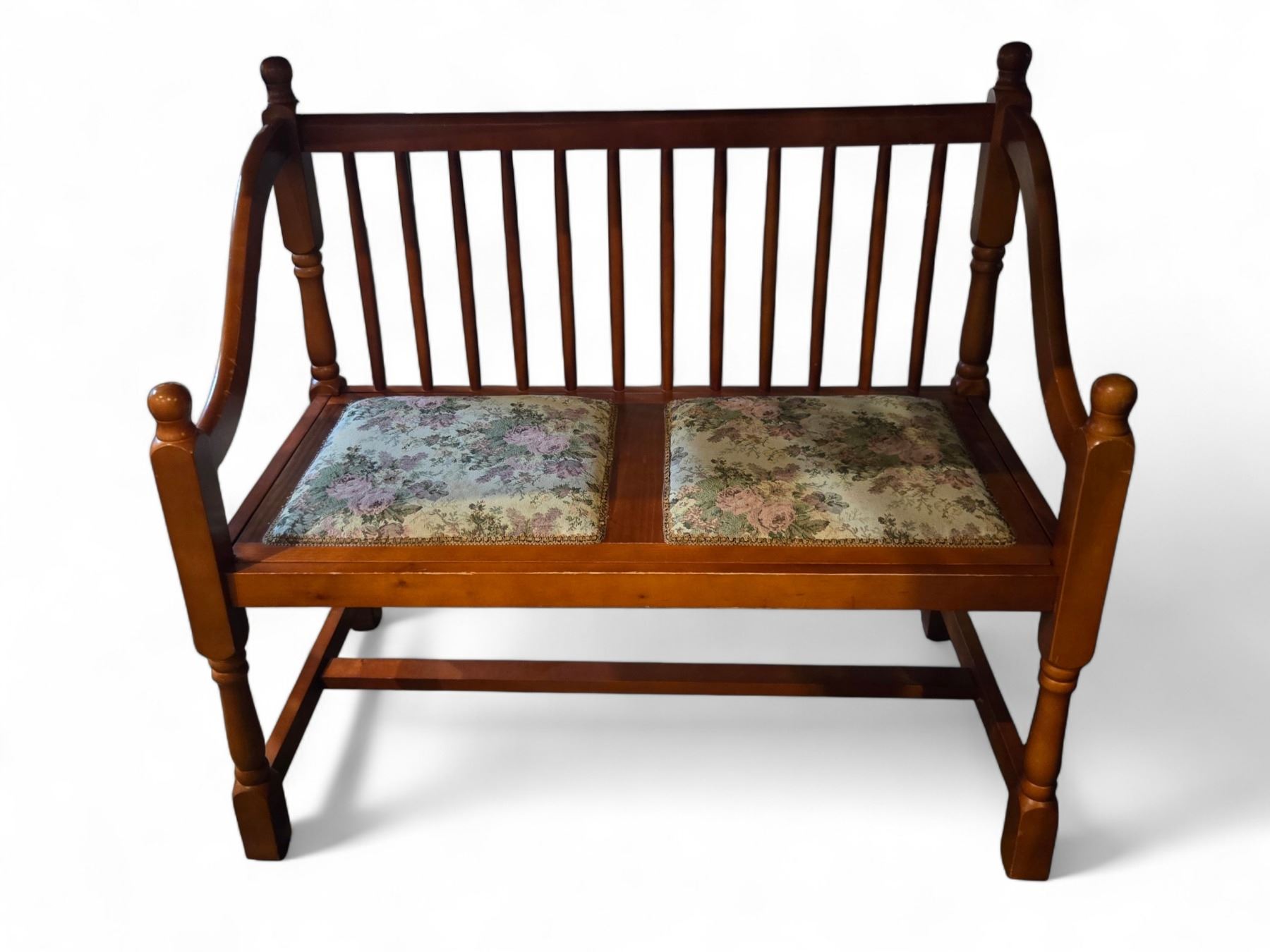 Vintage Wooden Bench w/ Floral Accent Seats