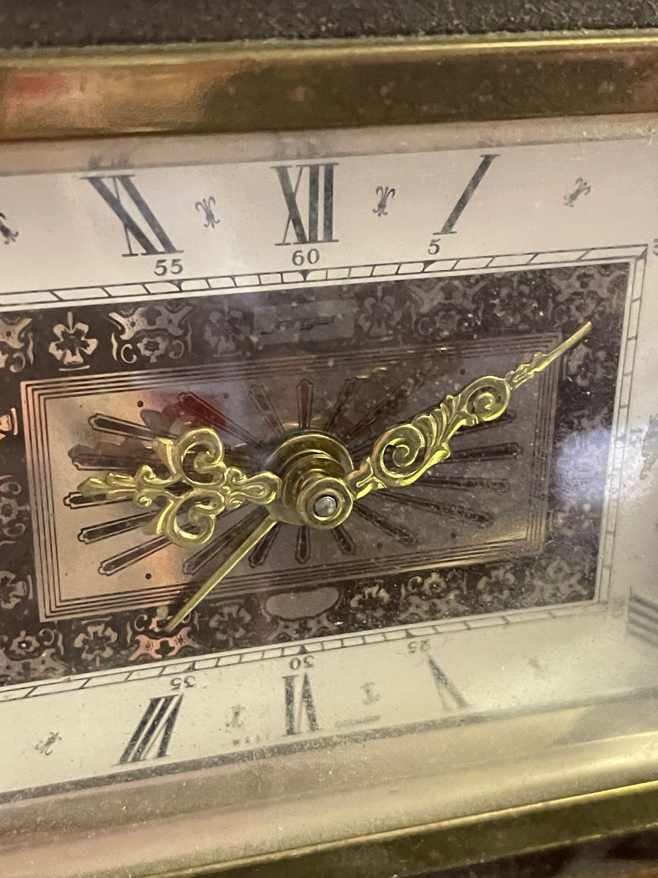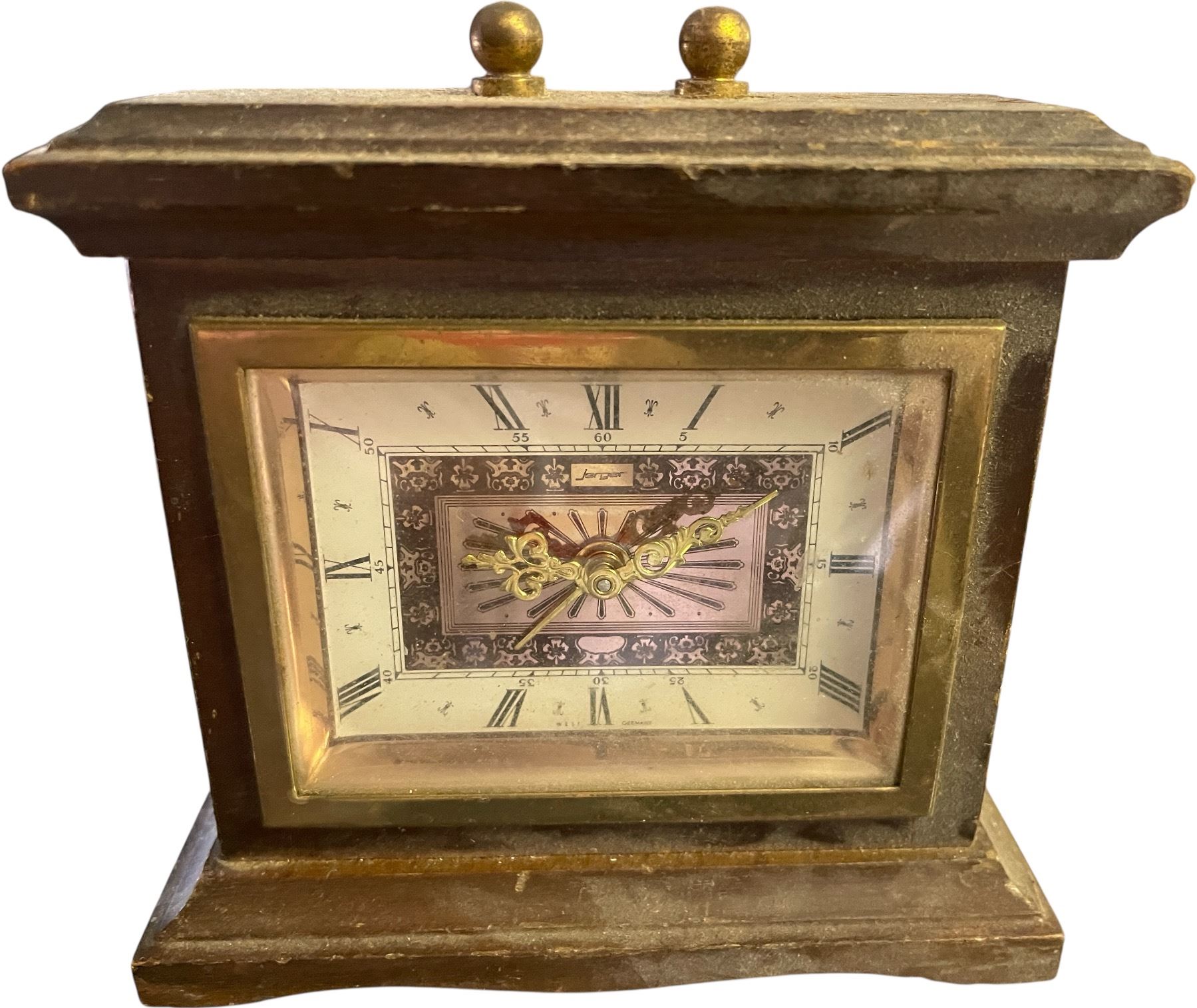 Vintage Wooden Mantel Clock with Brass Tone Dial