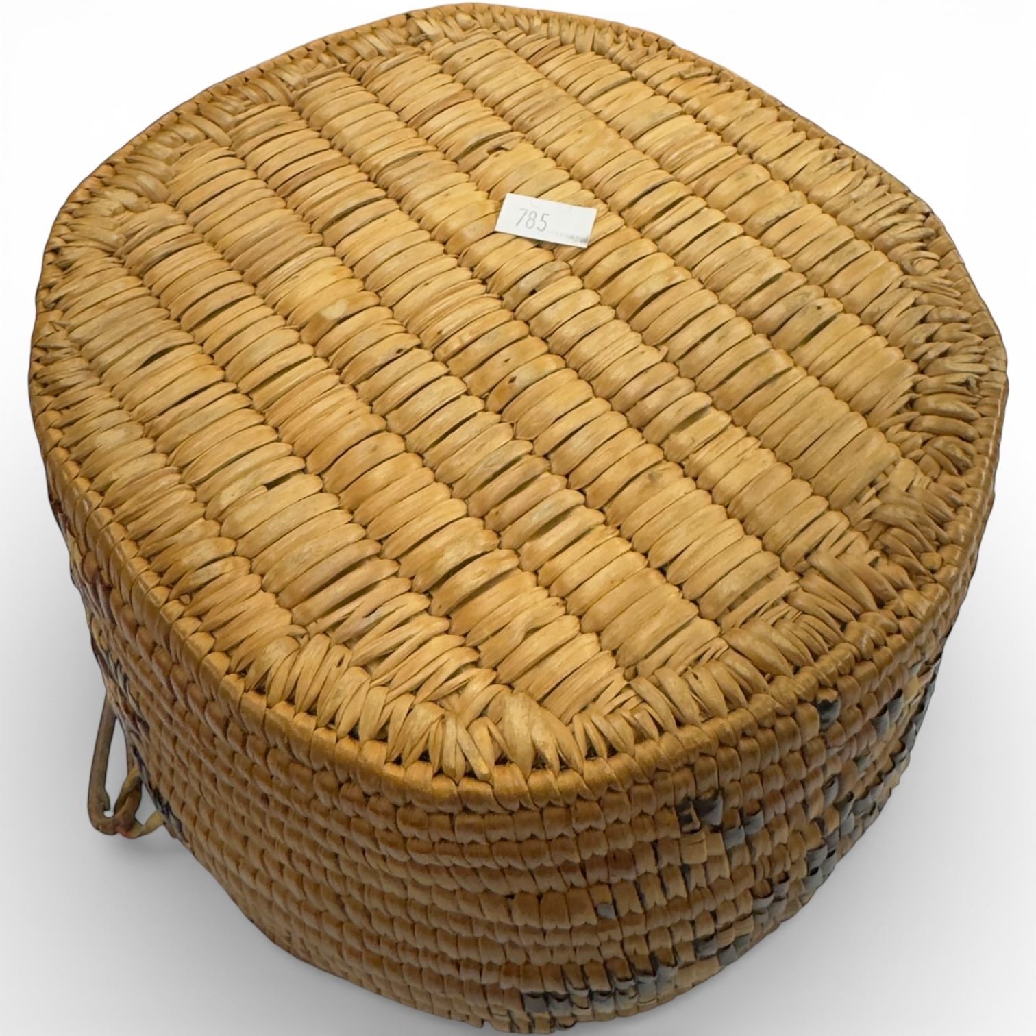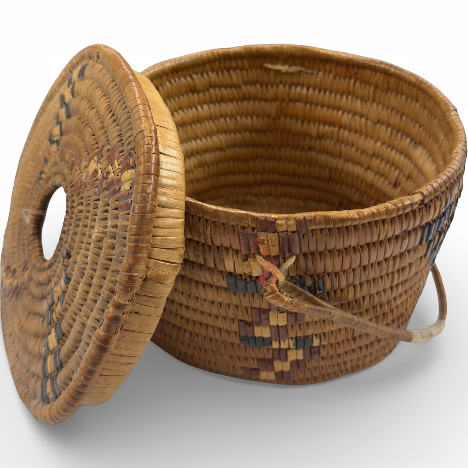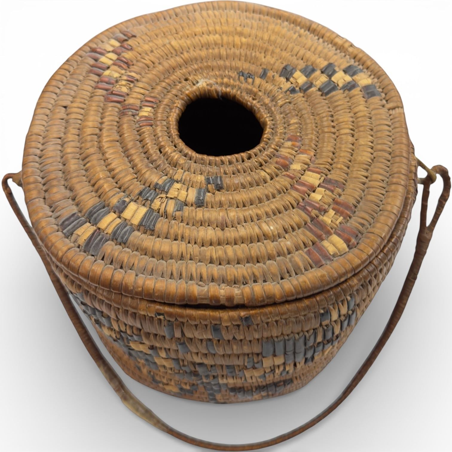 Vintage Woven Storage Basket with Handle - Believed to be Coast Salish (7" tall x 9" diameter)