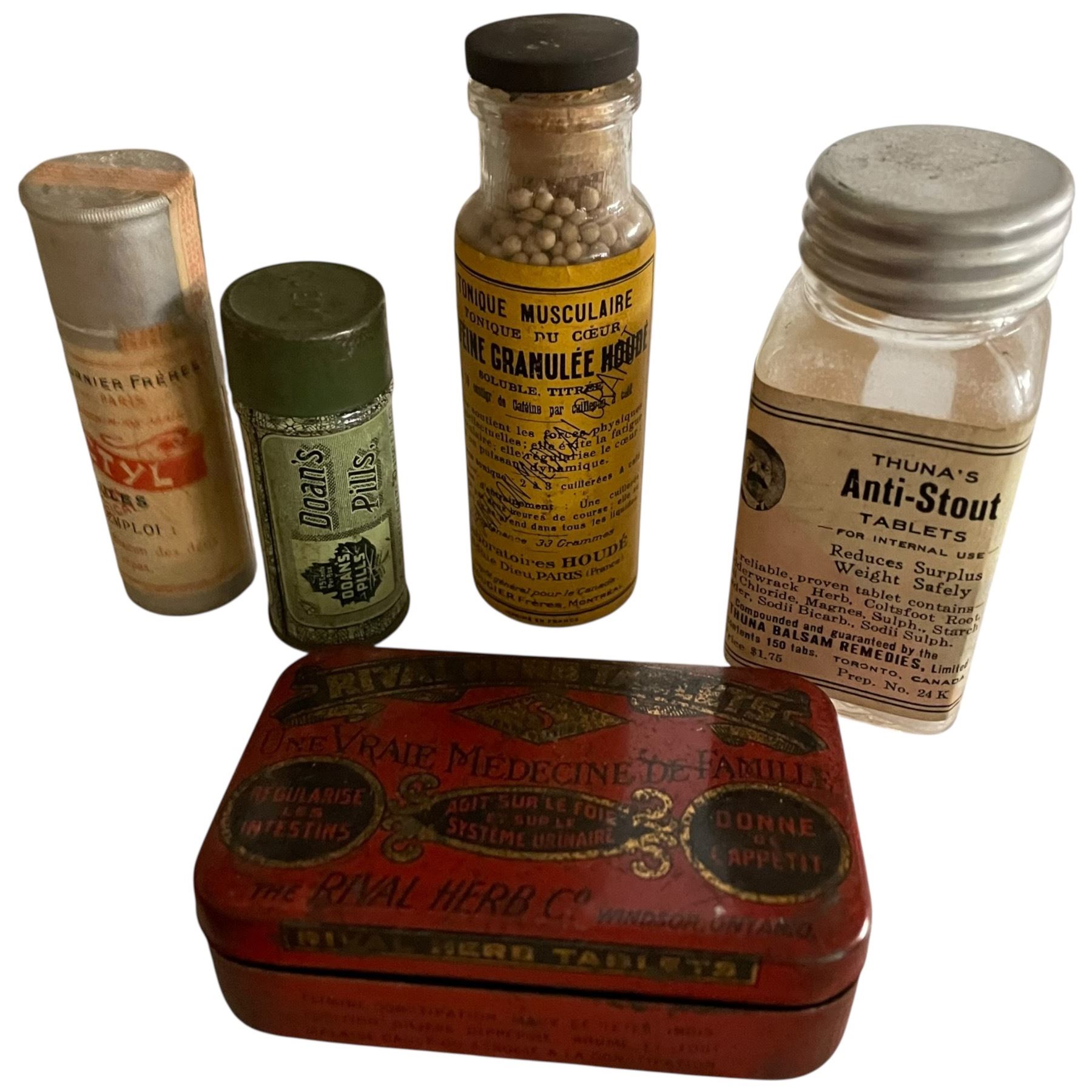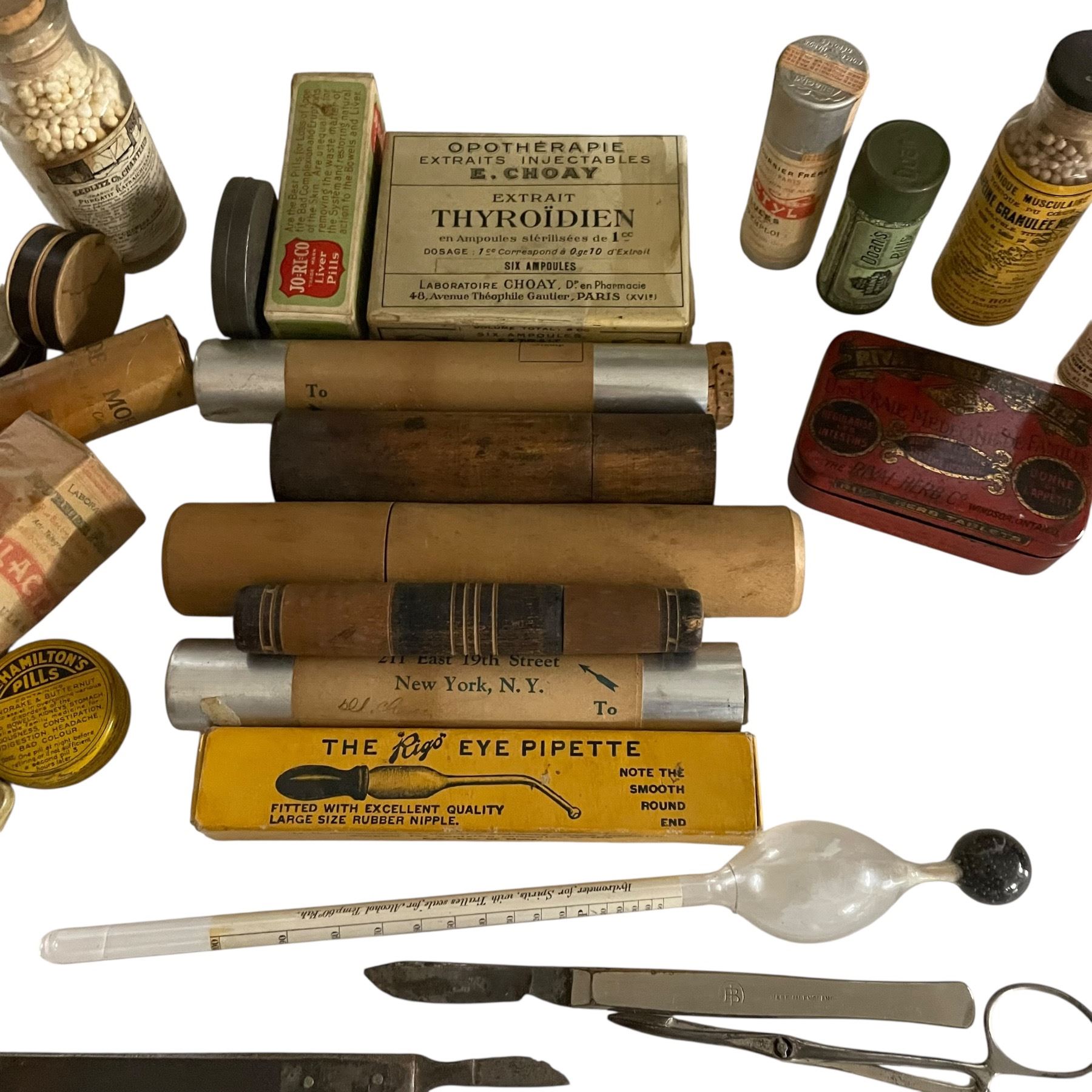 Vintage and Antique Medicine Cabinet Bottle, Tins and Thermometers