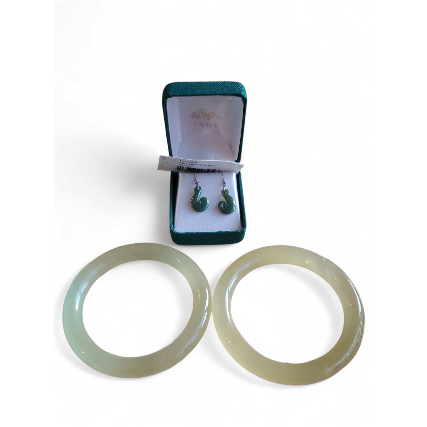 Vintage group of 2 Jade Bangle & Hook Earrings - Total R.V. $138