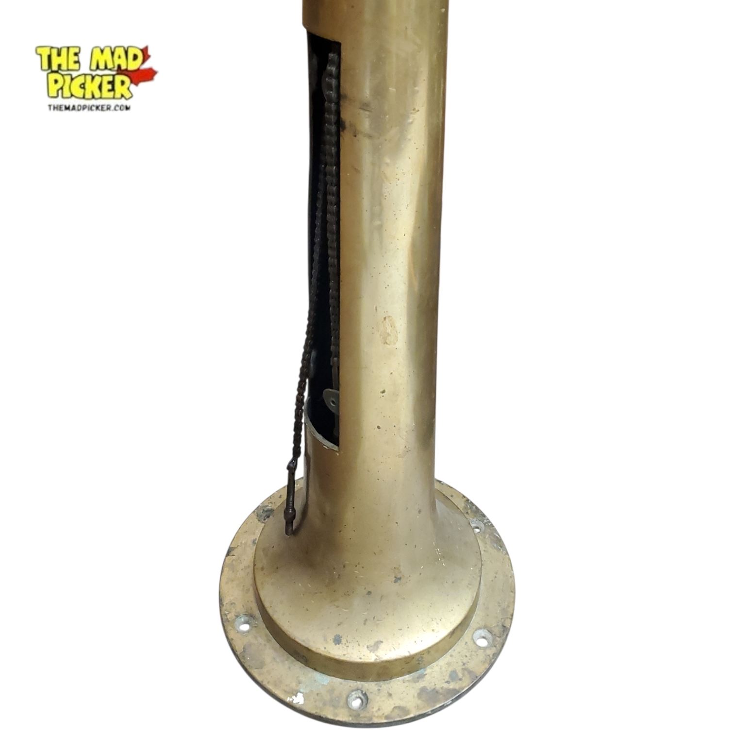This impressive solid brass Ship' Engine Order Telegraph, measuring approximately 45 inches tall by 15 inches wide, is a rare and historically significant naval artifact directly connected to the Royal Canadian Navy's service in the Battle of the Atlantic. Engine order telegraphs were essential command instruments aboard wartime vessels, used to relay propulsion commands between the bridge and the engine room with absolute clarity during convoy escort operations, evasive maneuvers, and combat conditions.