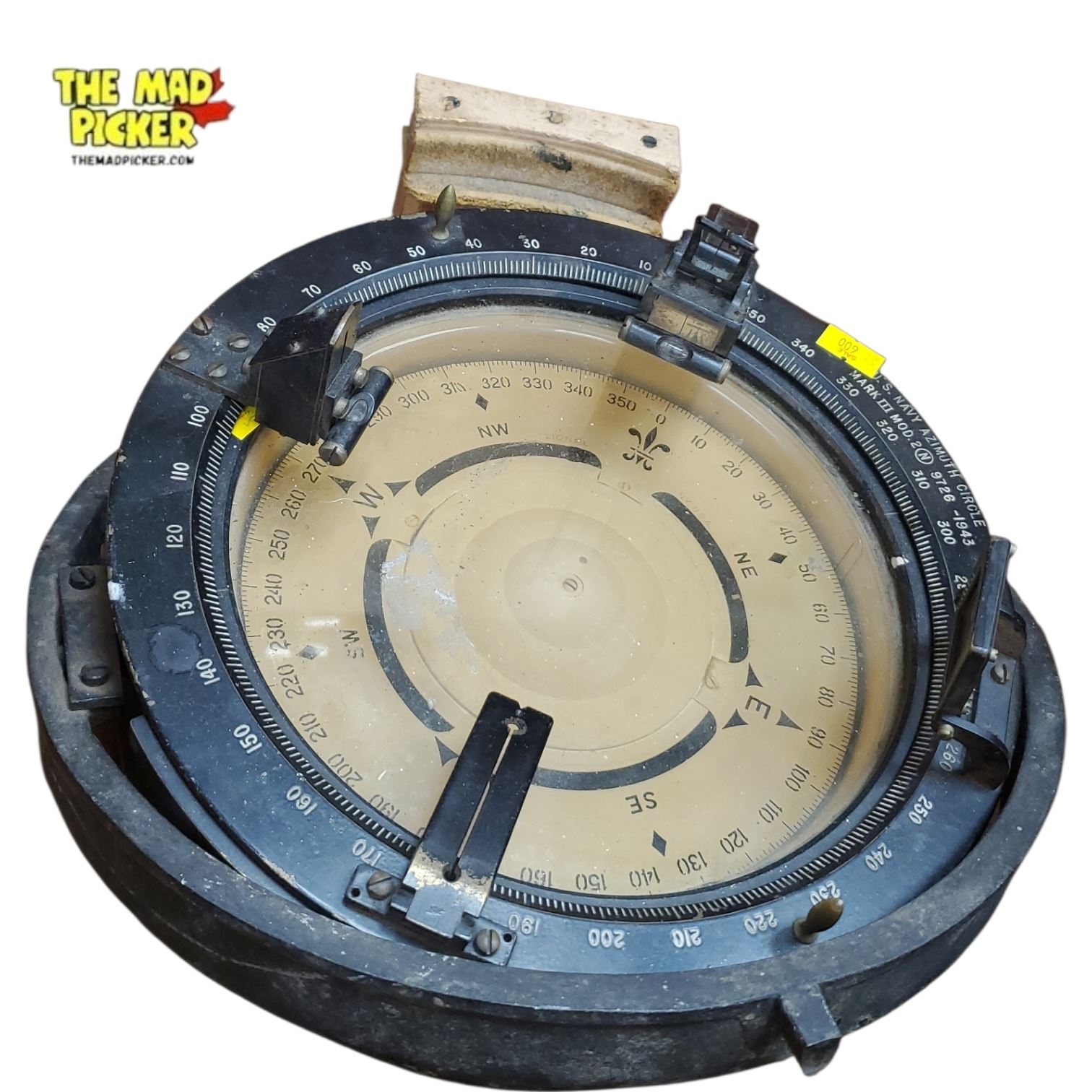 This exceptional WWII‑era U.S. Navy Azimuth Circle, Gyro Compass Mark III Mod. 2, manufactured in 1943, represents one of the most important navigational instruments used aboard Allied warships during the Battle of the Atlantic. Designed for precision bearing‑taking, gyrocompass alignment, and celestial or horizon reference, the azimuth circle was a critical tool for officers responsible for safe navigation, convoy escort duties, and ship handling under wartime conditions.