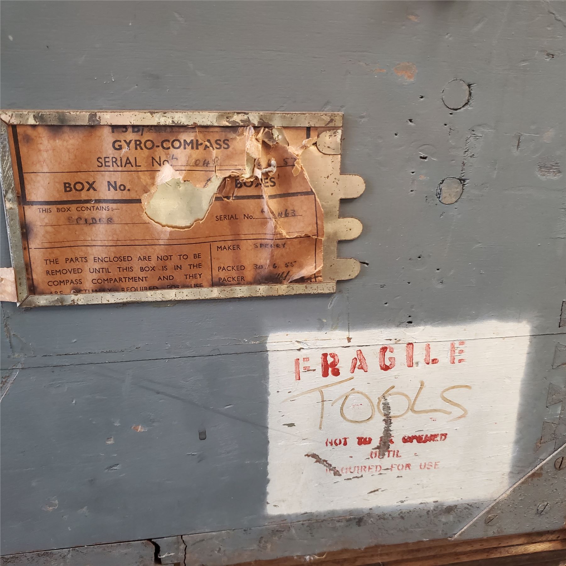 The instrument remains in excellent preserved condition, retaining its wartime finish, optical components, and mechanical adjustments. It is housed in its original fitted wooden case, complete with period hardware and internal supports. The case shows appropriate age and service wear consistent with WWII naval use, adding authenticity and character without compromising structural integrity.
