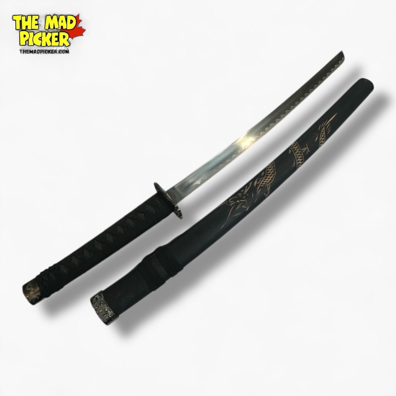 Collectible movie prop featuring a 32-inch wakizashi with a medium blade. Designed in traditional ninja style with a black finish. This decorative katana is non-functional and crafted for display or costume use.