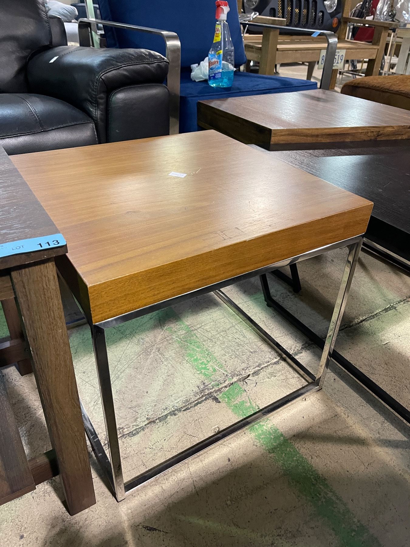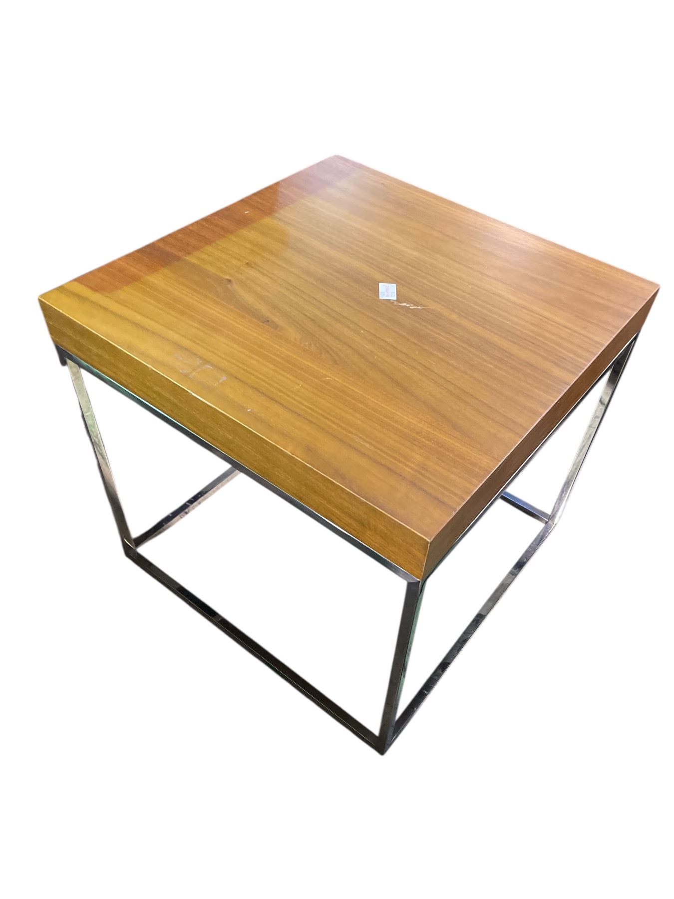Walnut Veneer Wood Top Side Table with Chrome Metal Frame, H19" x 20.5" x 20.5"