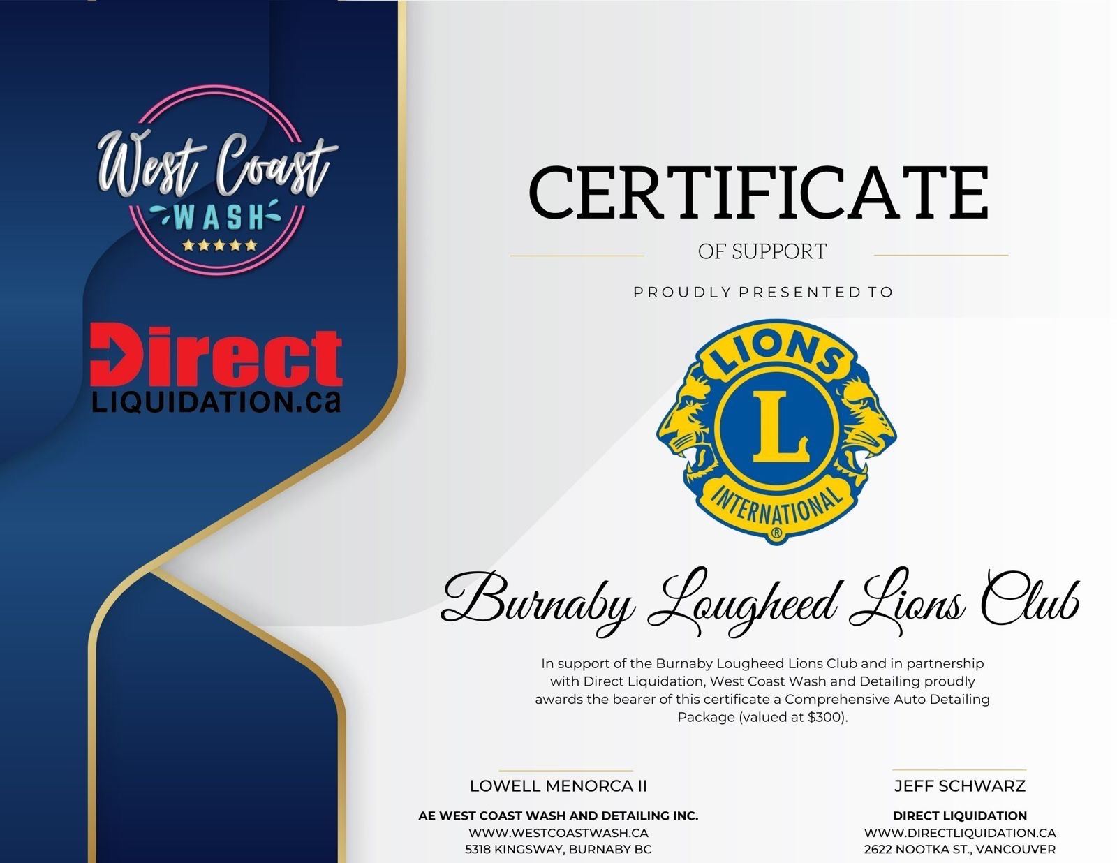 PICK-UP LOCATION: 7420 MULBERRY PLACE, BURNABY, BC. V3N 4X3