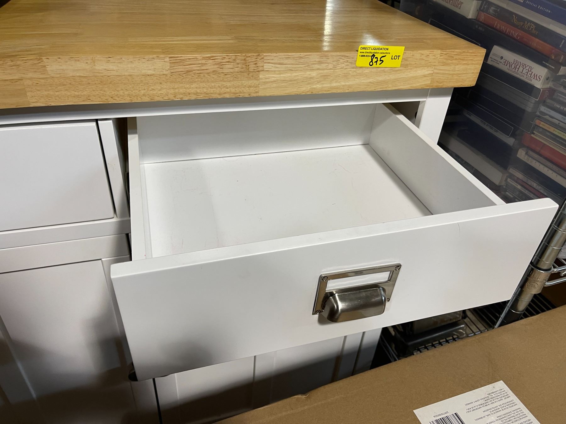 White 2-Drawer Kitchen Island, H37" x W38" x D17"
