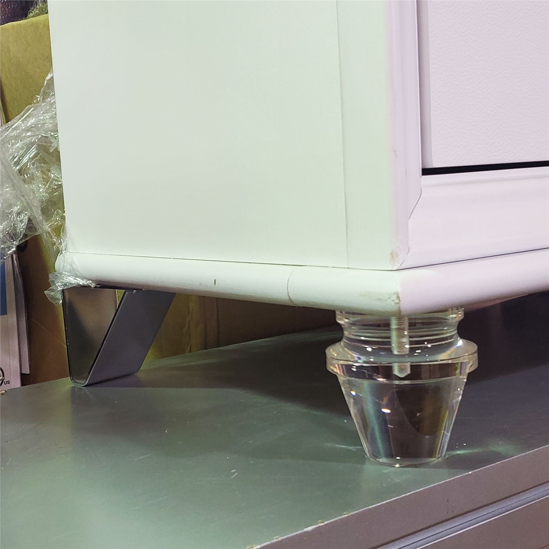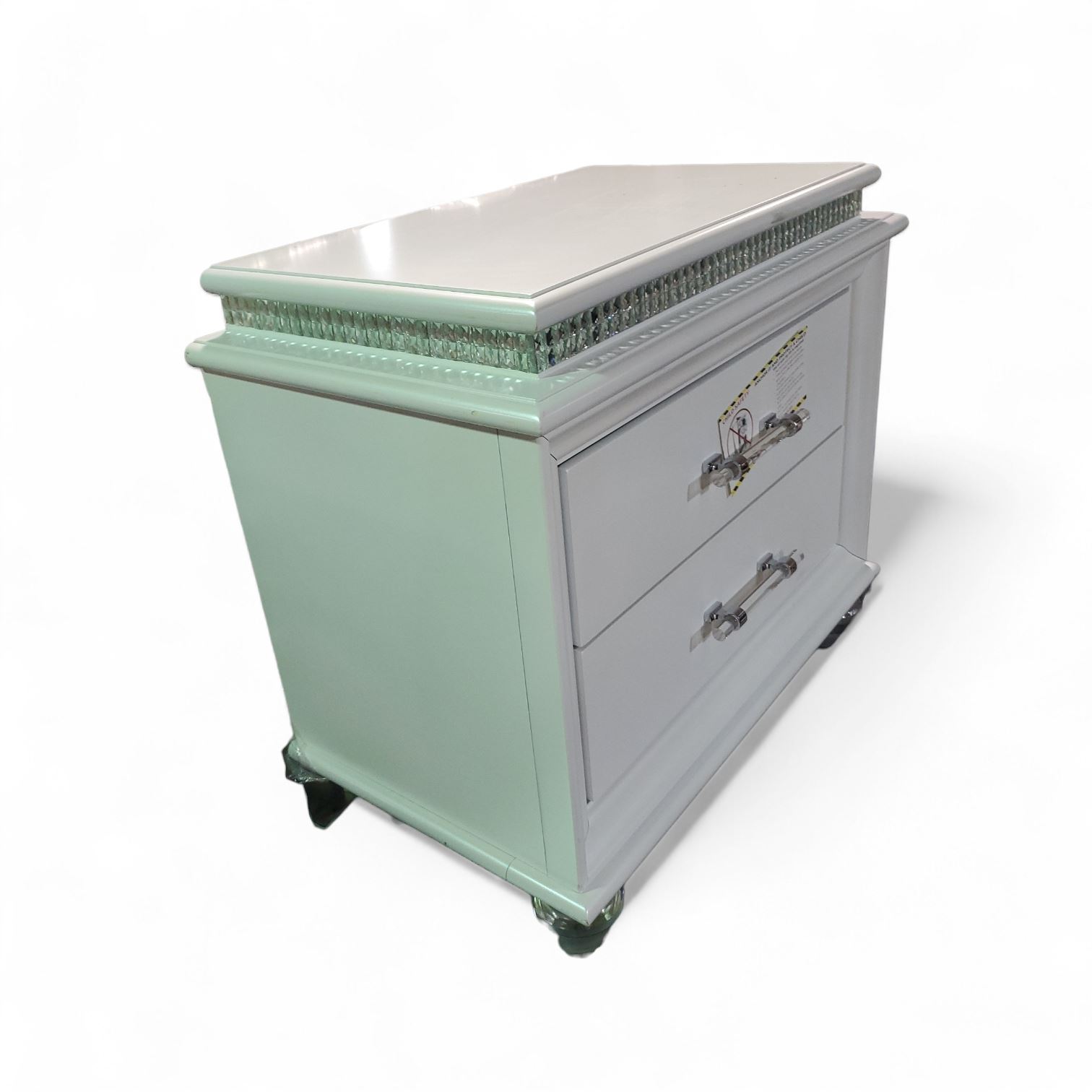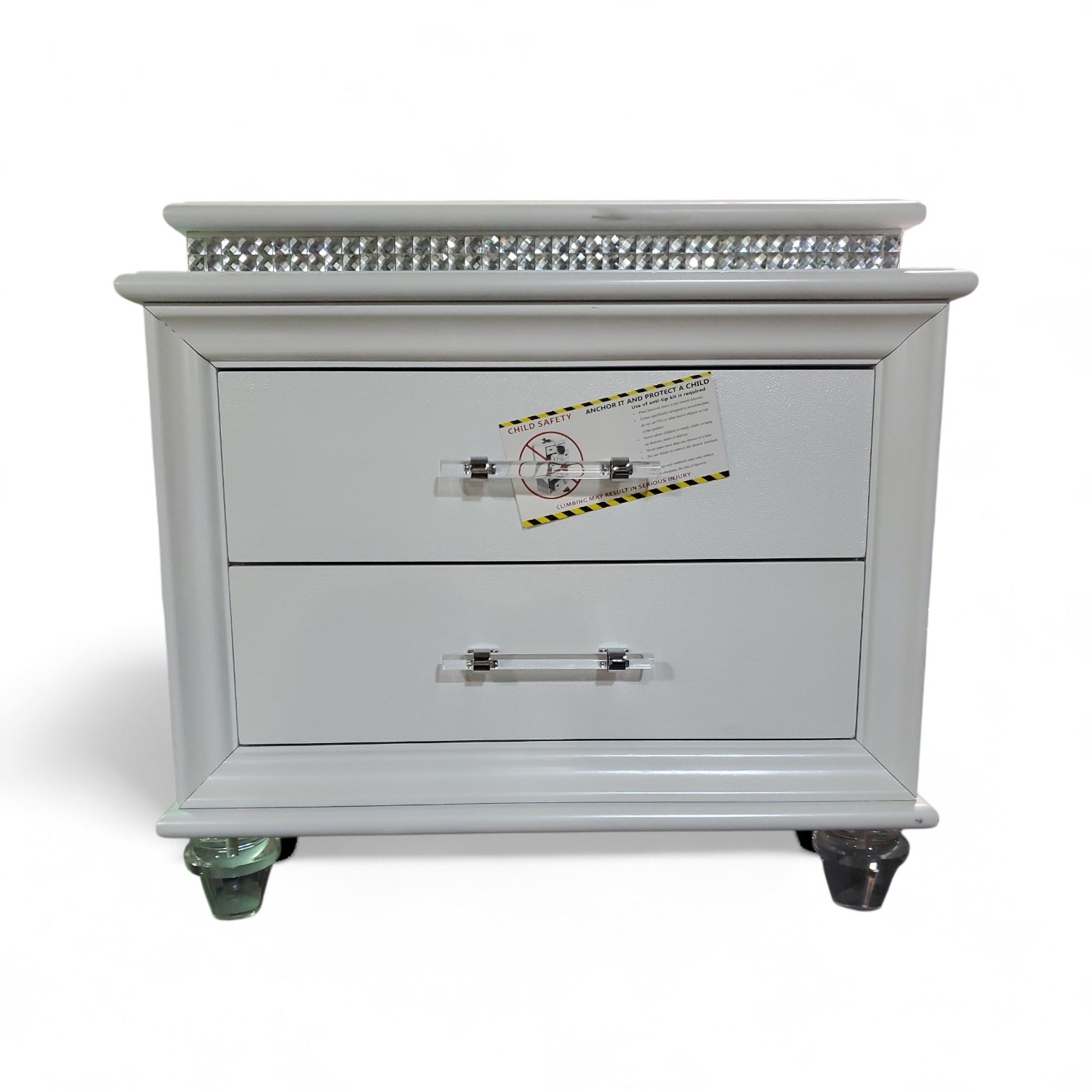 White 2-Drawer Nightstand with Acrylic Legs, H26.5" x W29" x D17"