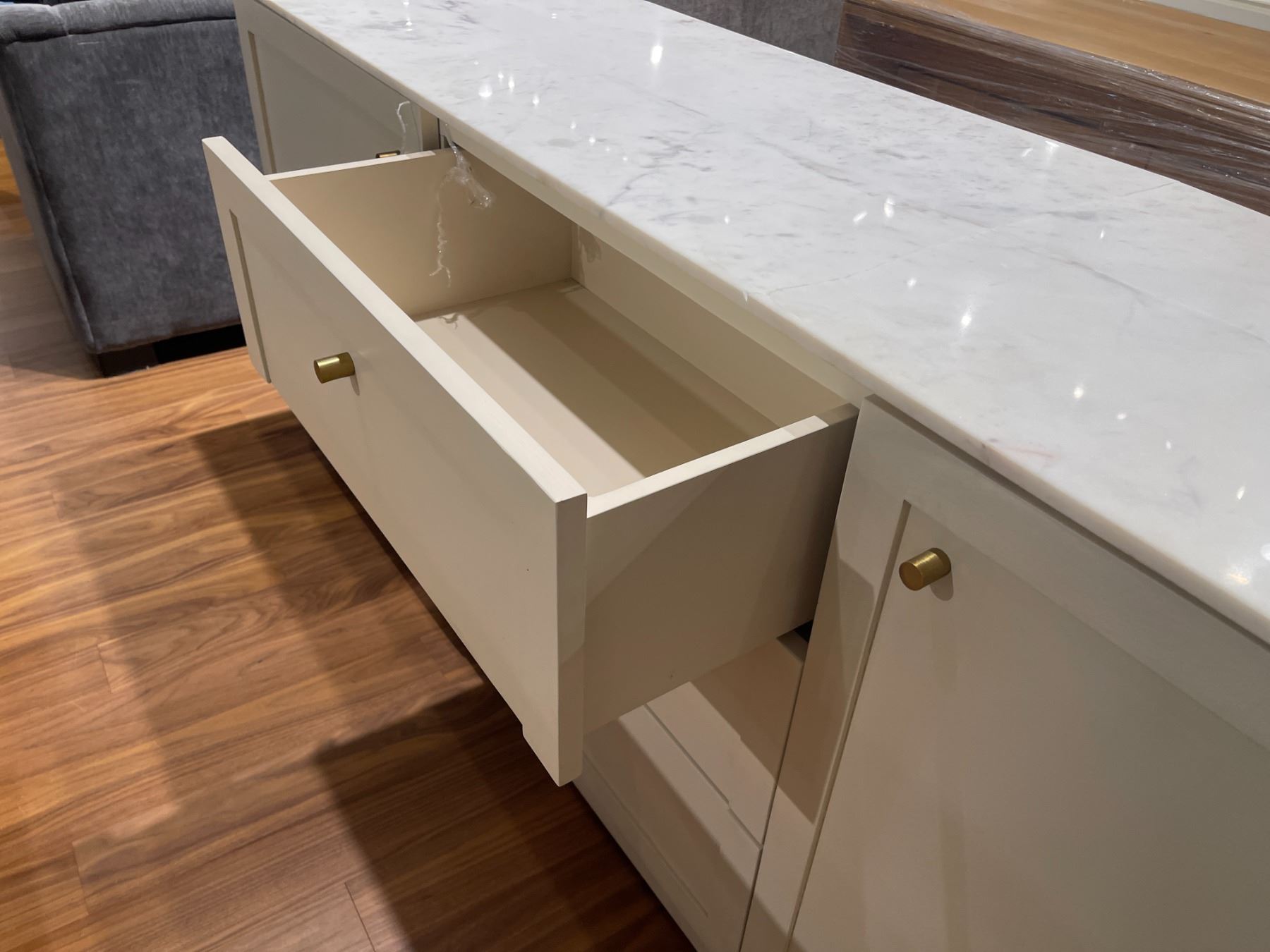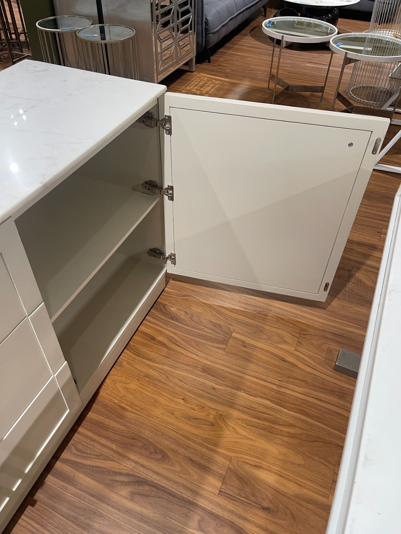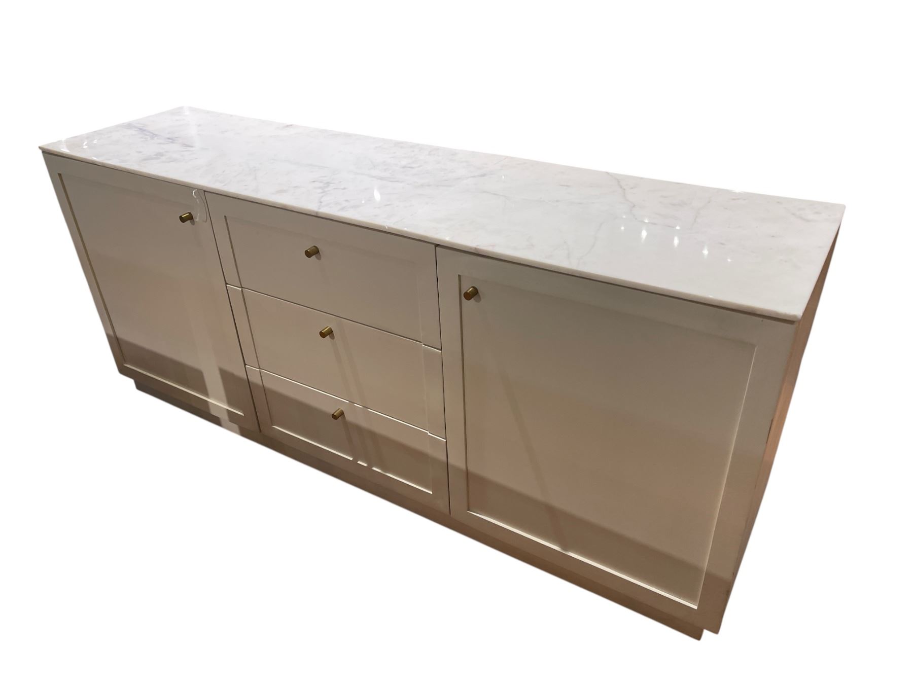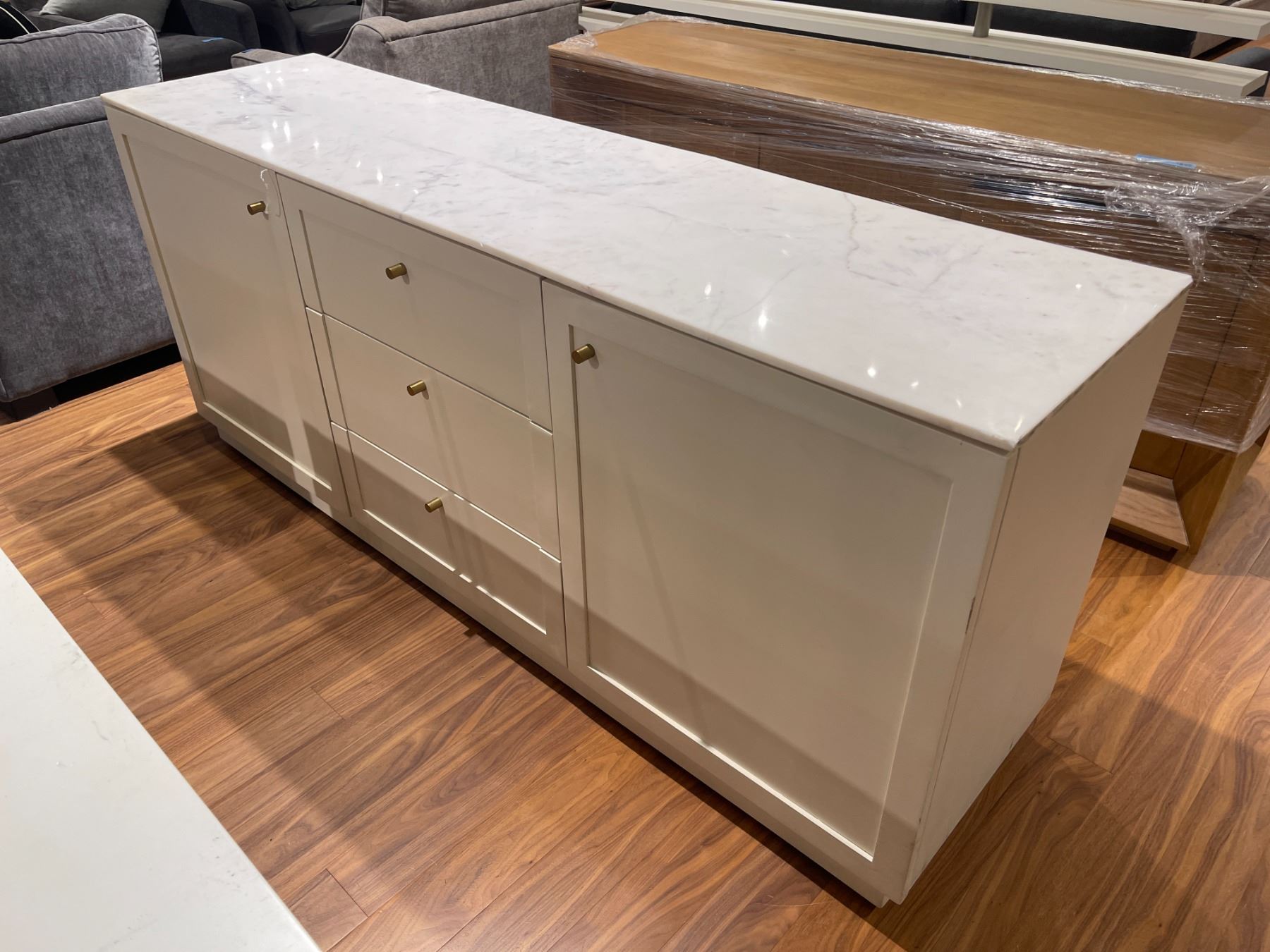 White Cabinet Sideboard w/ Marble-Style Top 78" L x 20" W x 33.5" H
