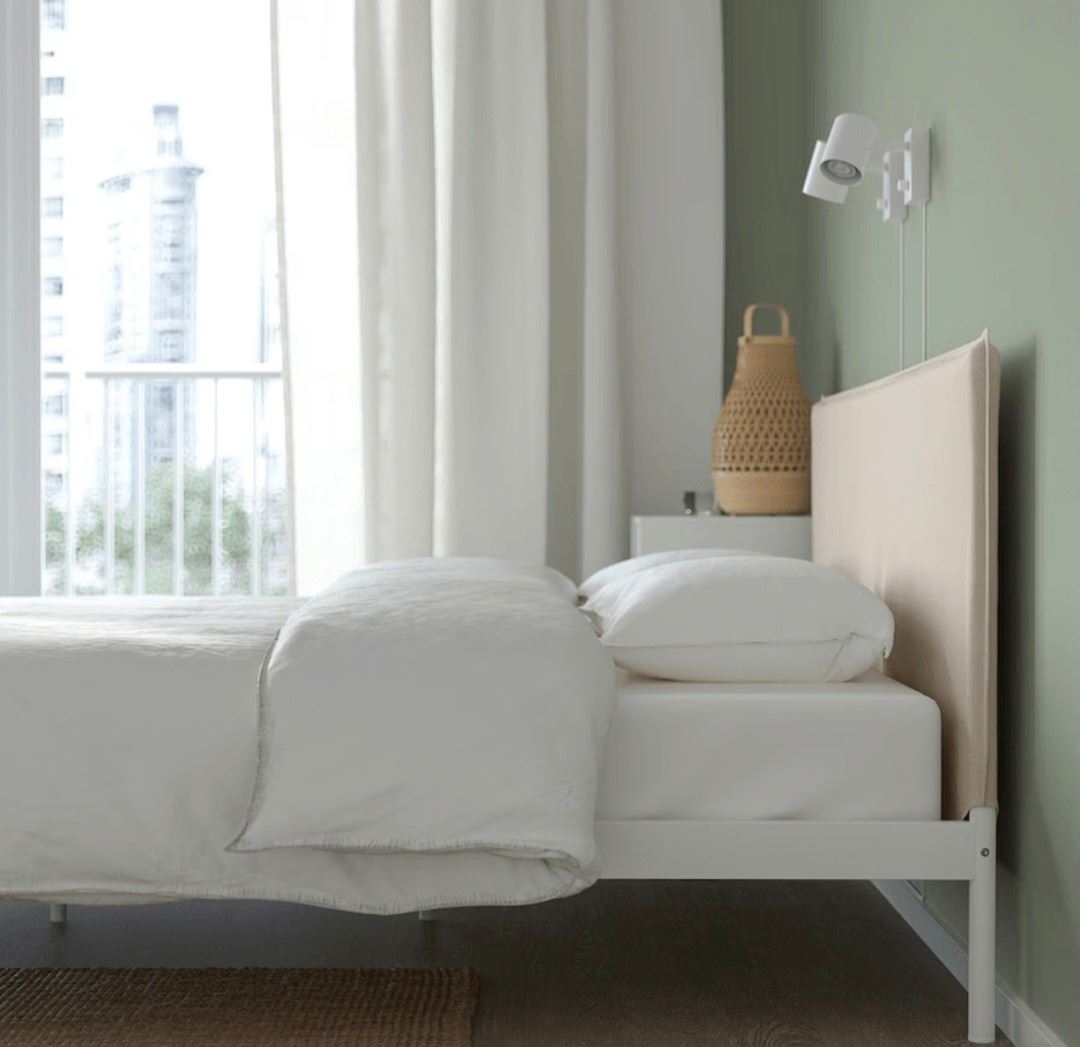 White Metal Double Bed w/ Headboard, Side Rails, Footboard & Frame