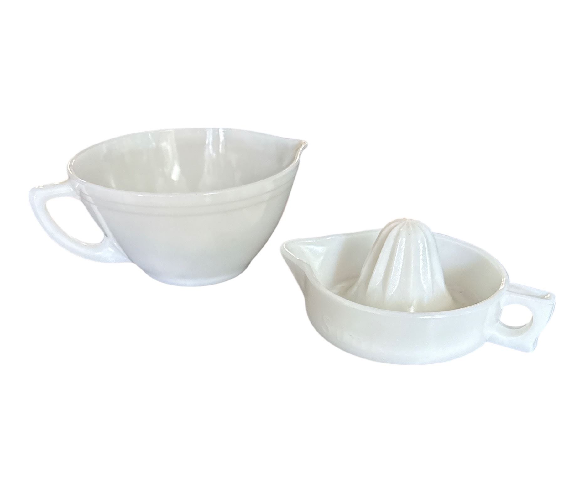 White Milk Glass Mixing Bowl & Citrus Juicer