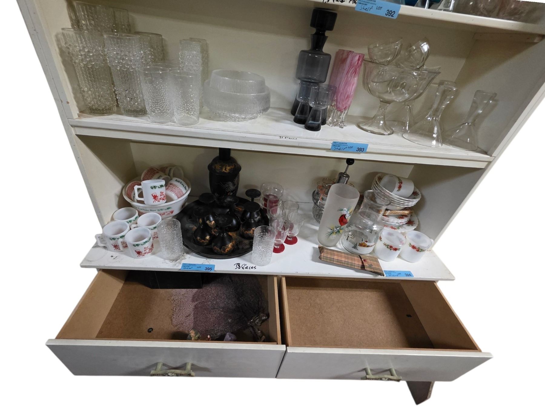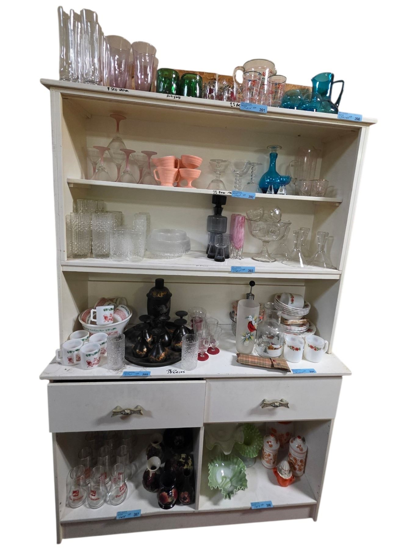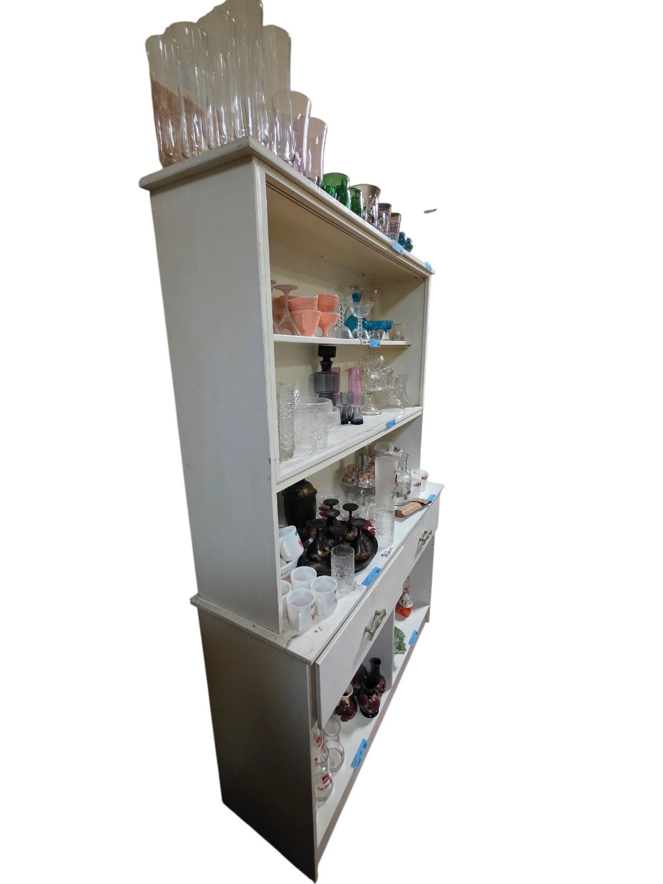 White Painted Wooden Display Hutch / Shelf Unit with Drawers & Lower Storage - Bidder Responsible for Removal (Last Day Pickup Recommended/Contents Not Included)