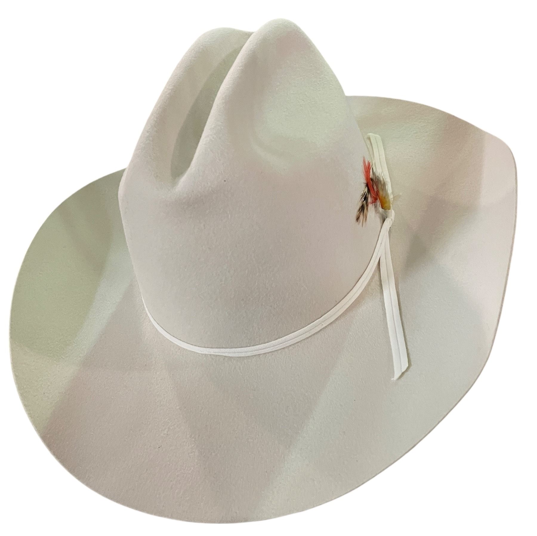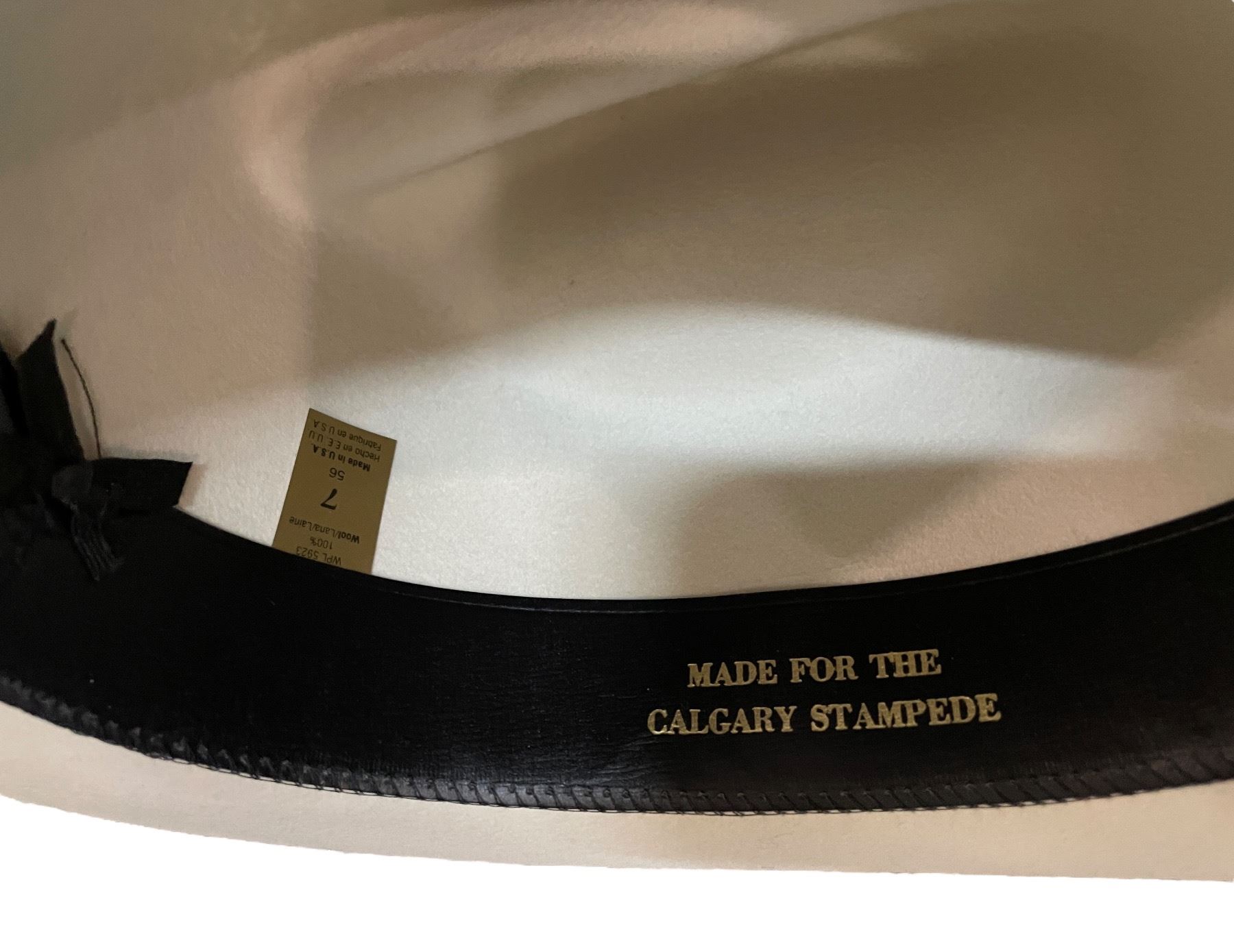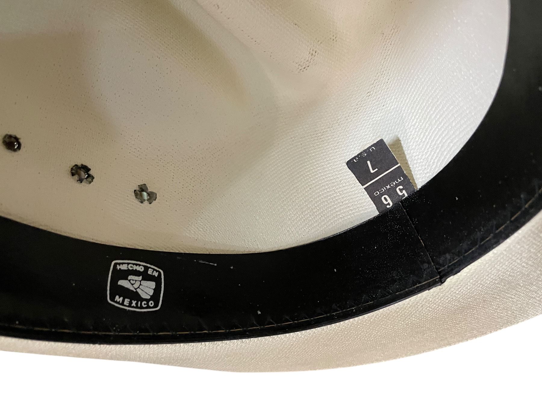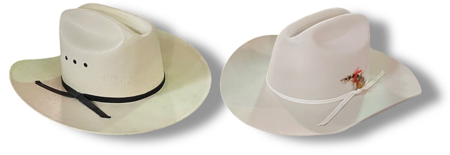 White Straw Cowboy Hat (Made in Mexico, Size 7) and White Felt Calgary Stampede Cowboy Hat (Made in USA, Size 7)