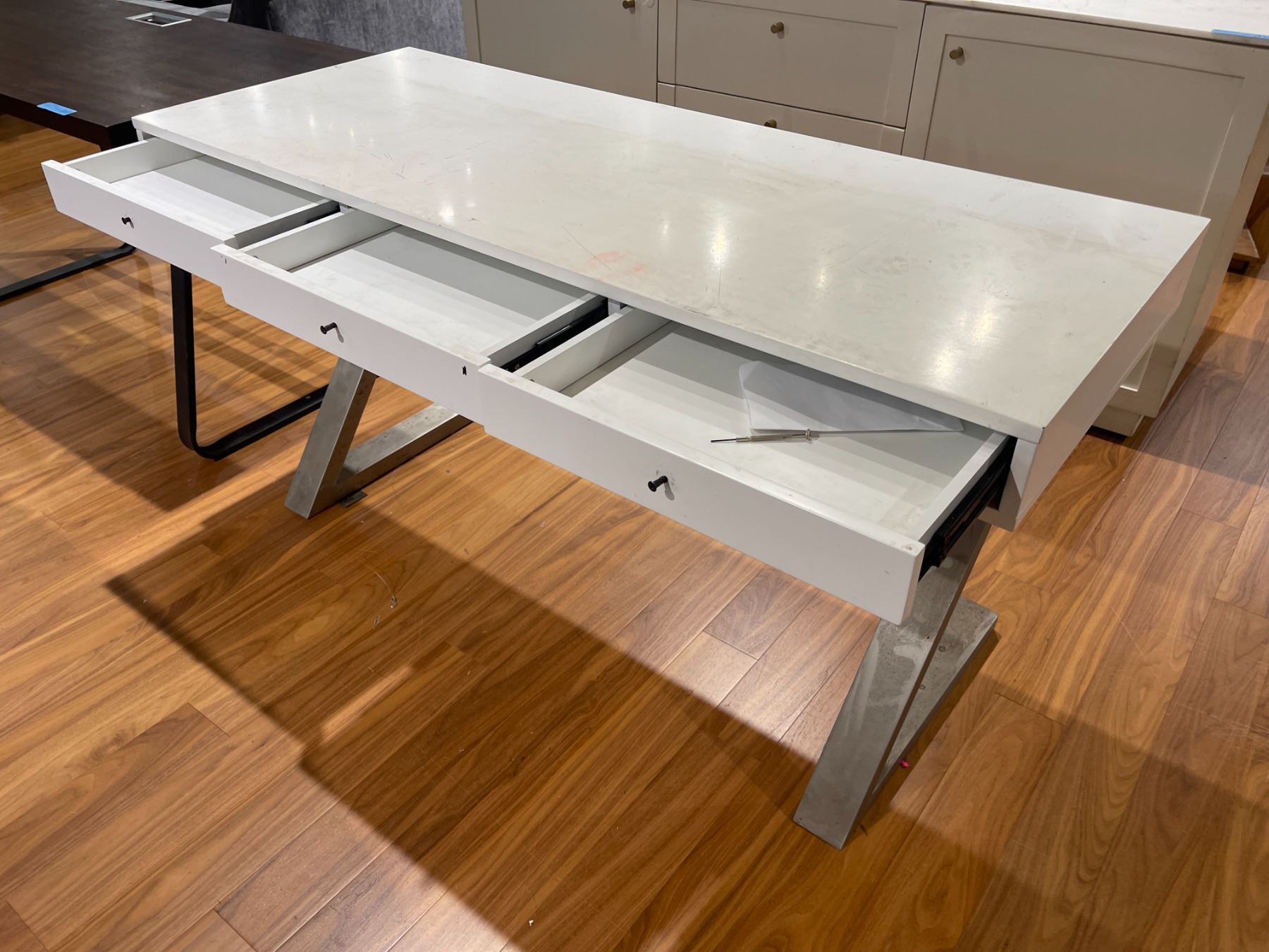 White Work Desk w/ Drawers 59" L x 24" W x 30.5" H