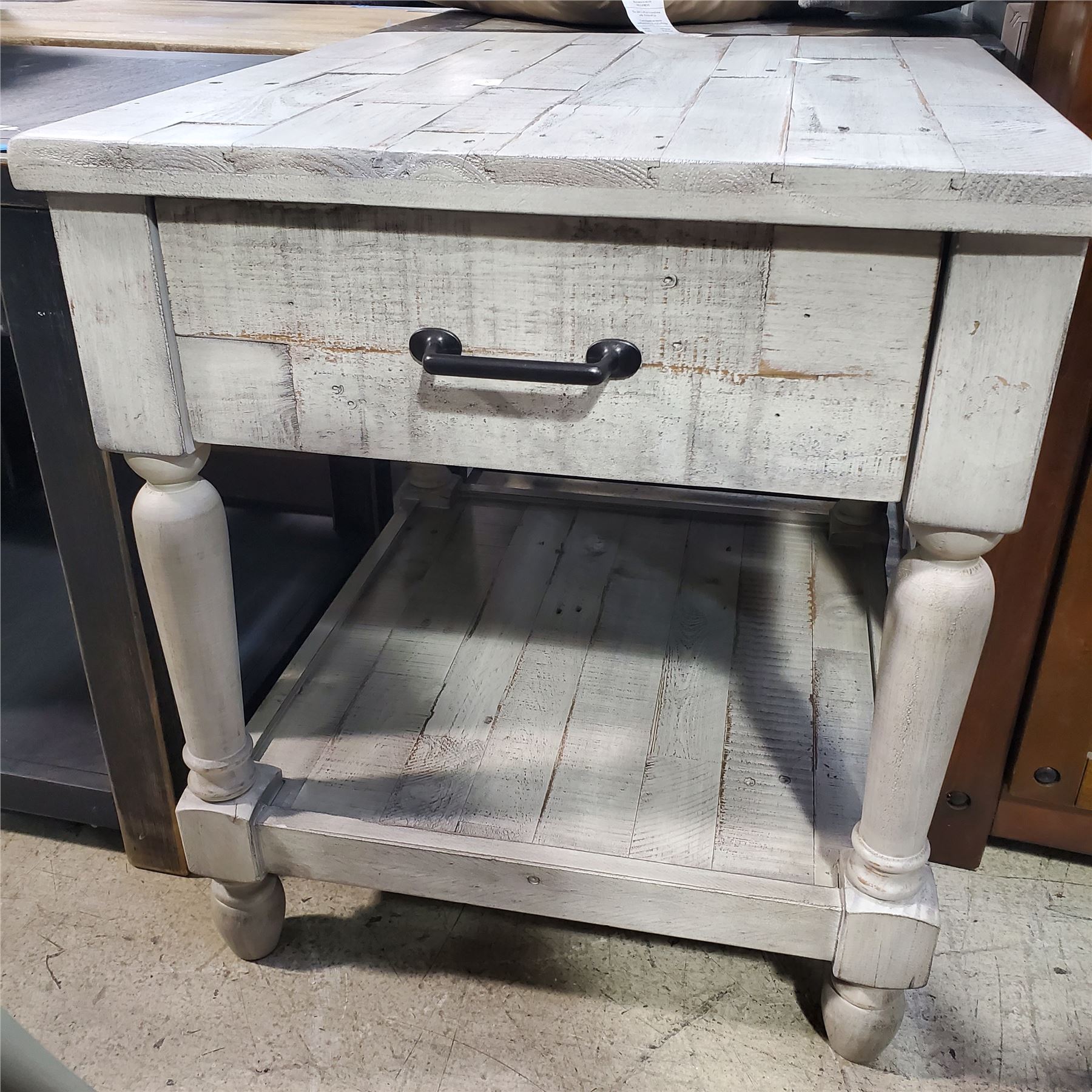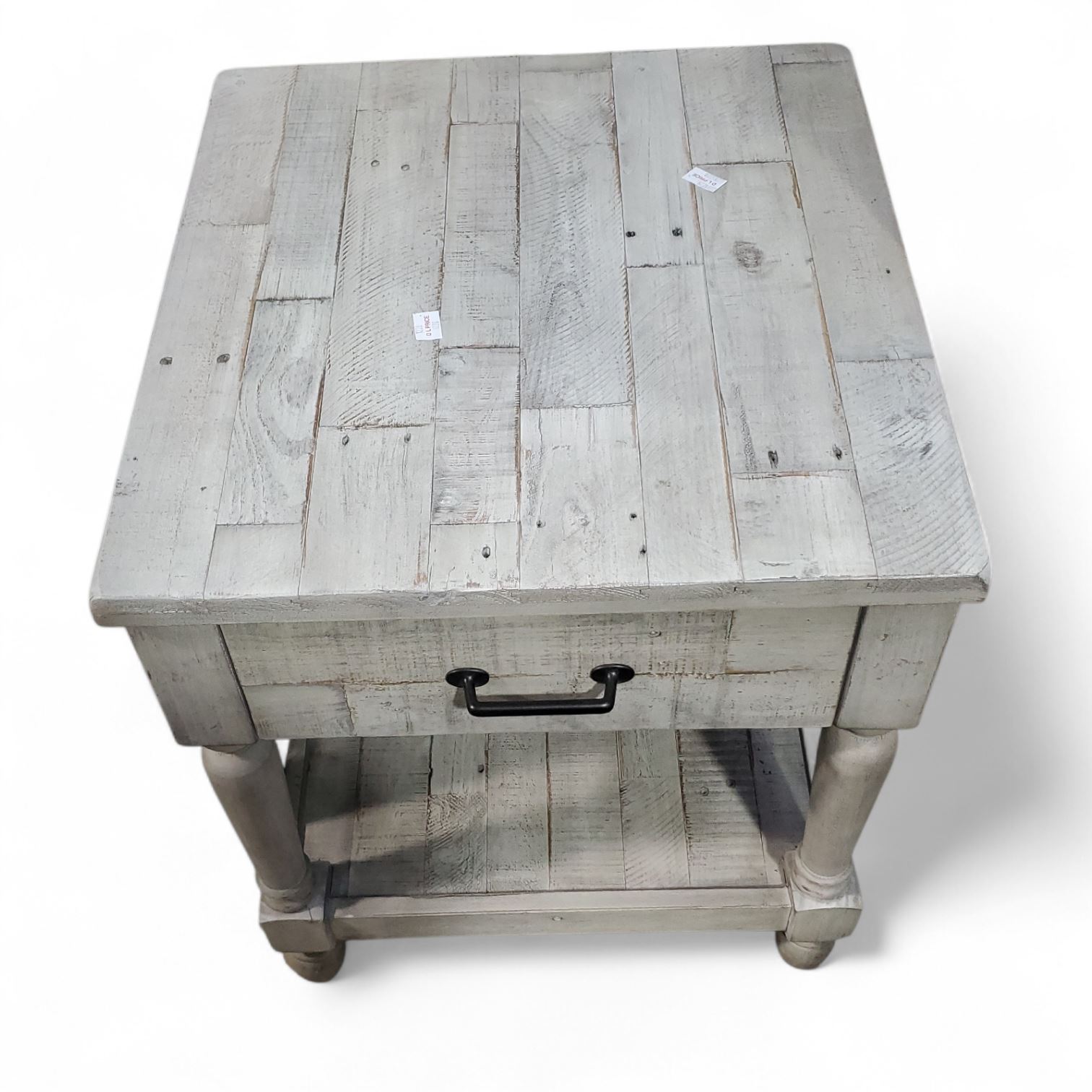 Whitewashed Rustic Wood Nightstand, H25" x 22" x 24"