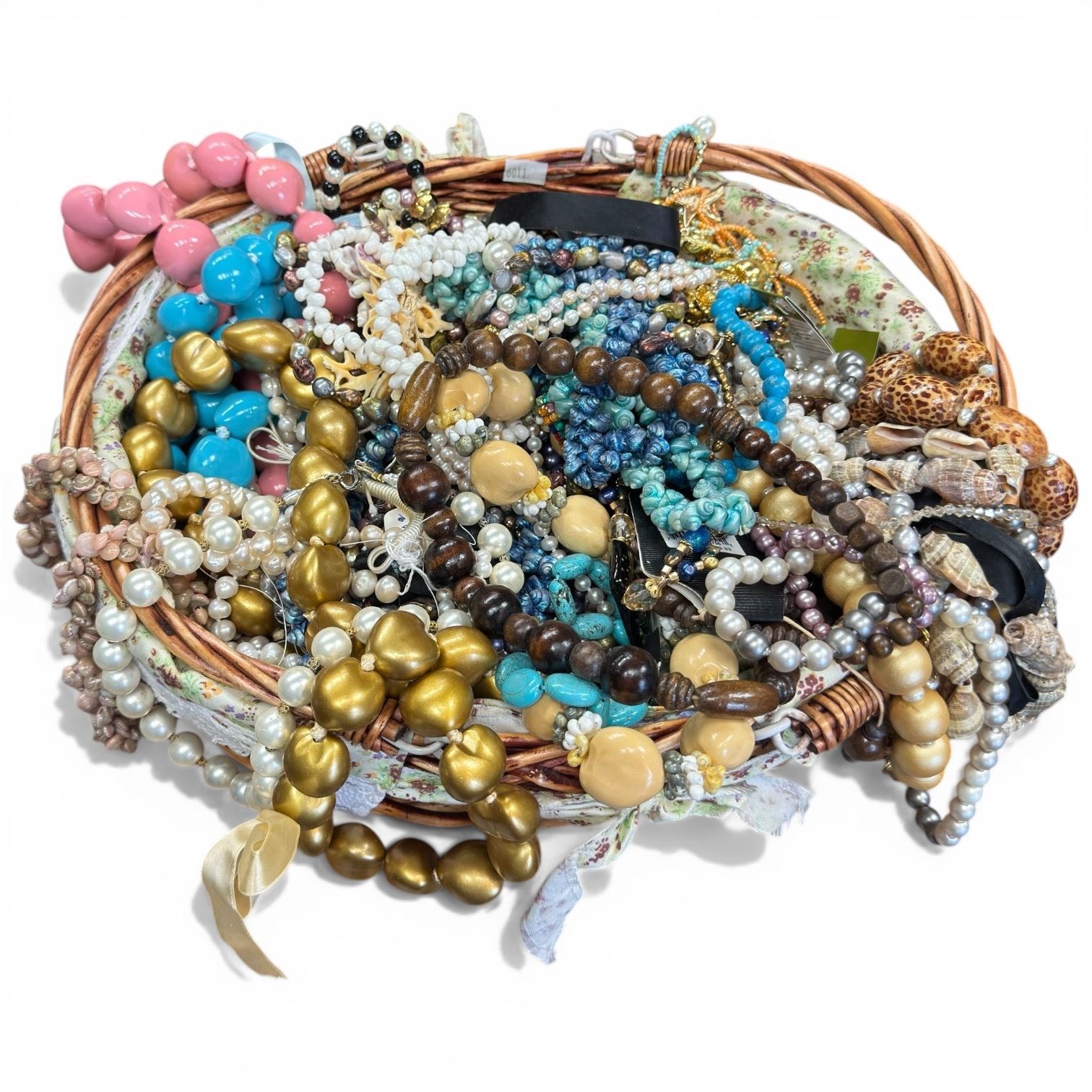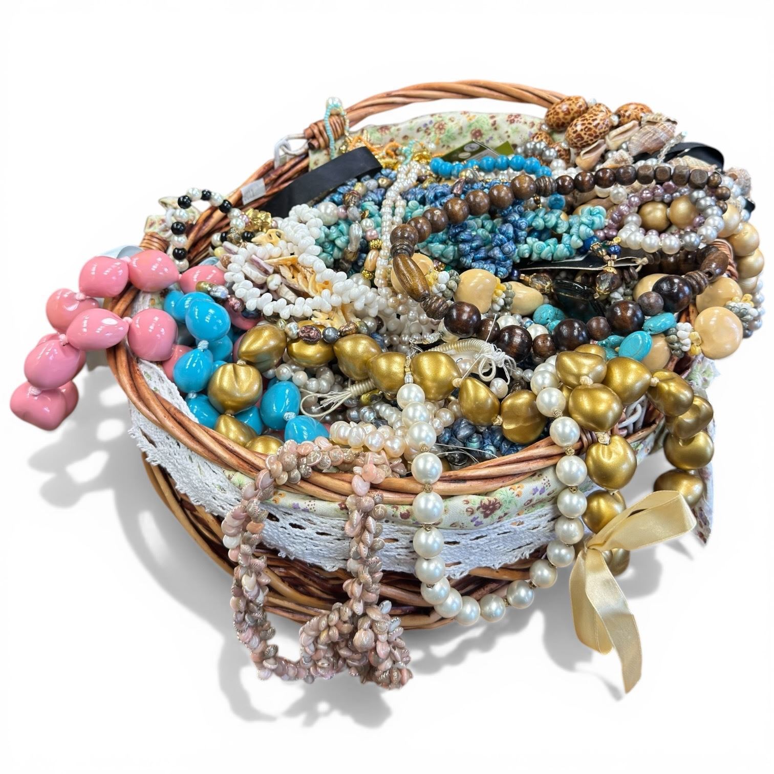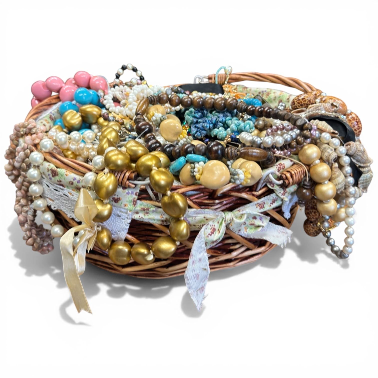 Wicker Basket Full of Beaded Fashion & Costume Jewelry