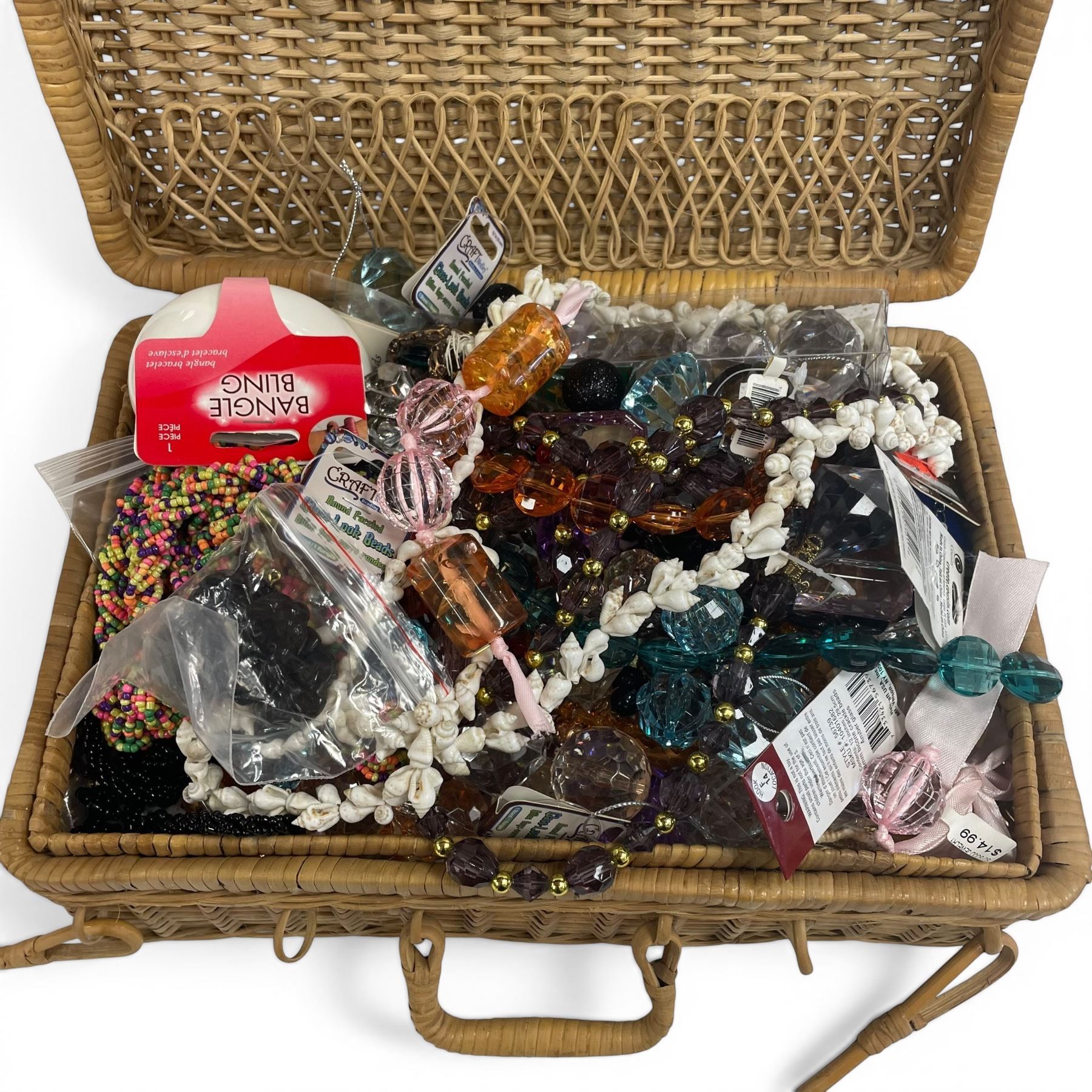 Wicker Box Full of Beaded and Other Jewelry (Box measures: 8" x 12" x 3" deep)