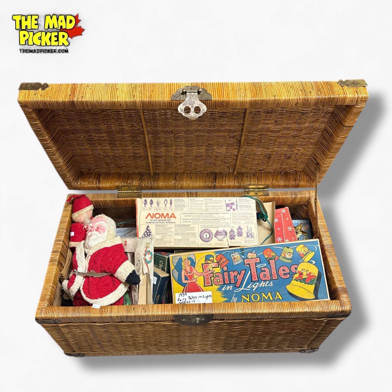 Wicker Trunk Full of Assorted Vintage Christmas Decorations - Trunk Approx. 32in x 16in x 16 1/2in