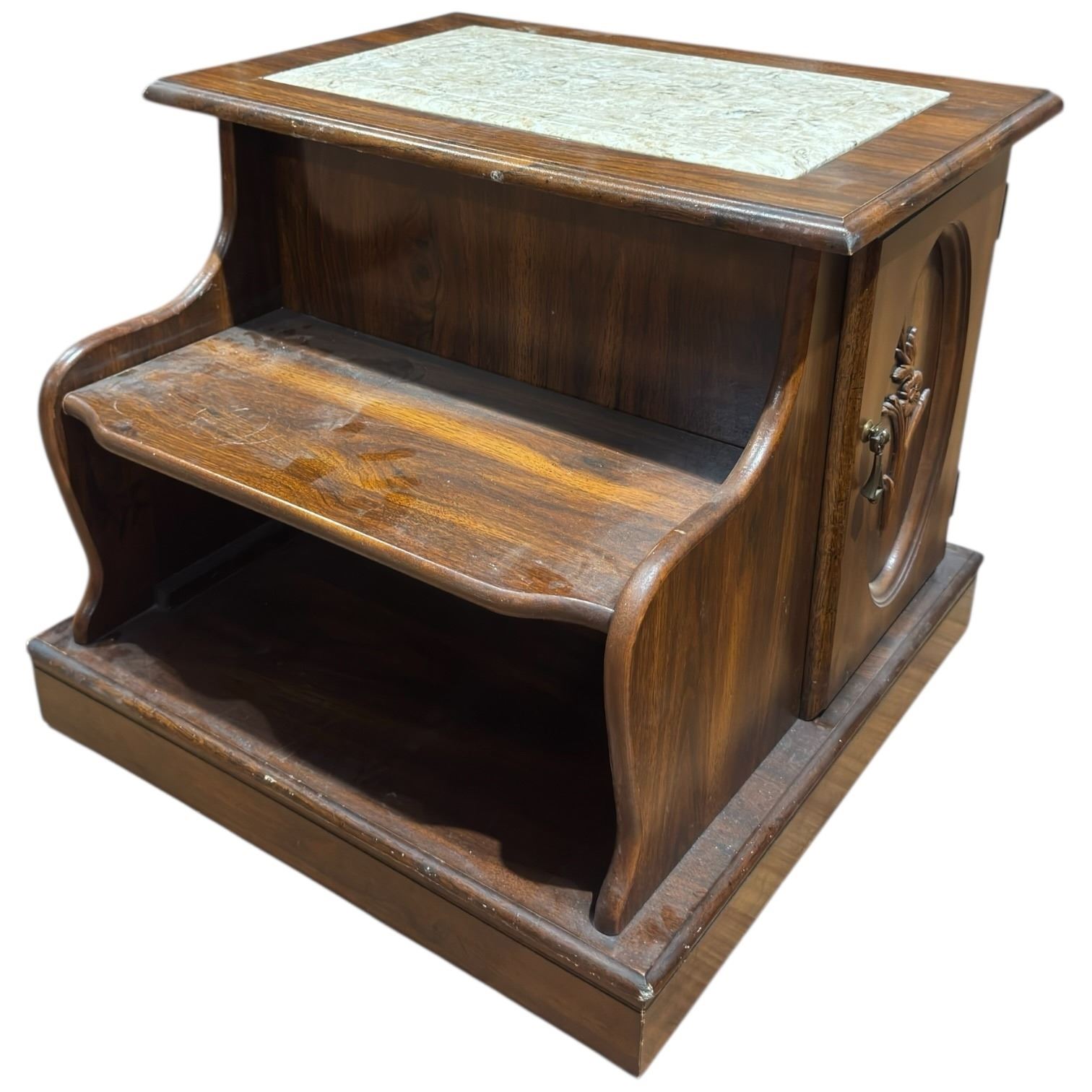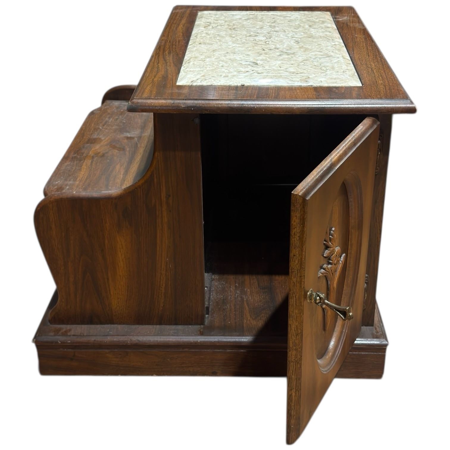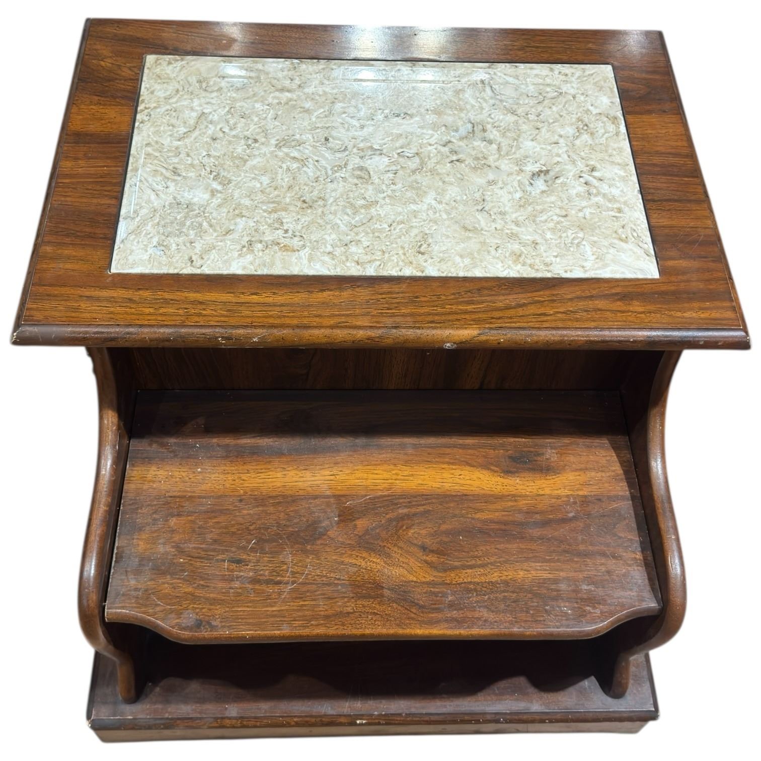 Wood 2 Tier Nightstand with Marble Insert Top and Side Door for Storage (24" x 24" x 20" tall)