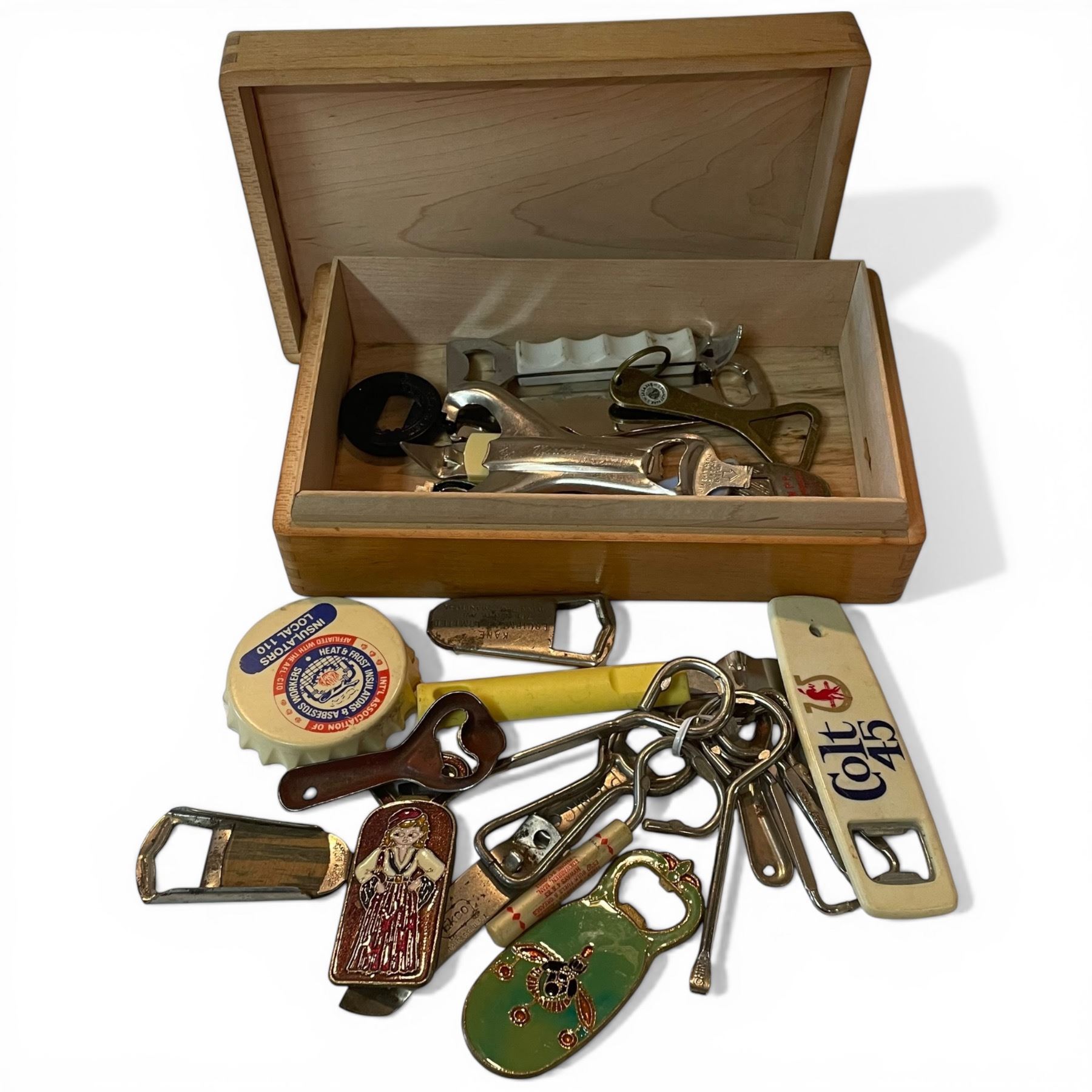 Wood Box of Collectible Bottle Openers