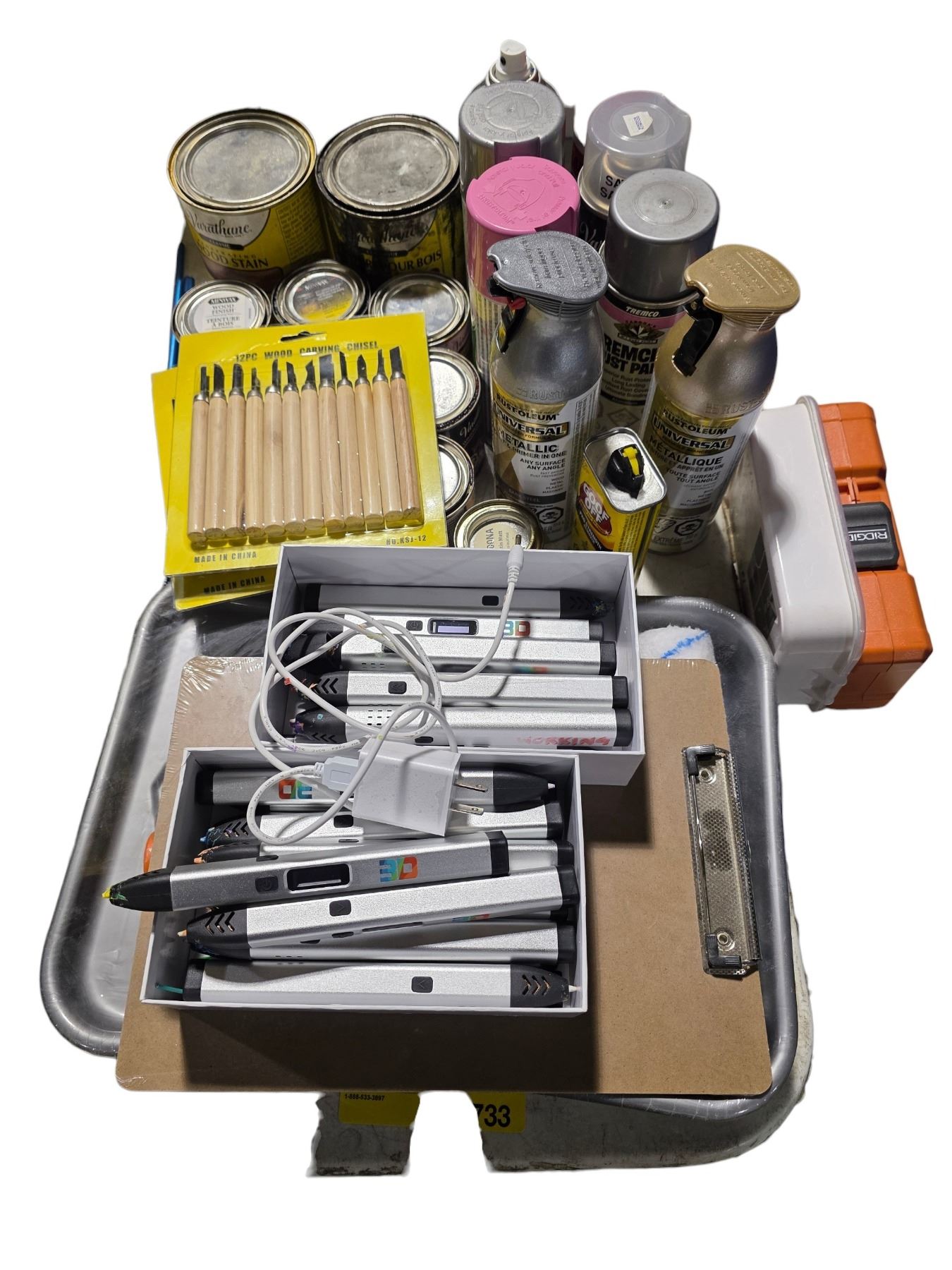 Wood Carving & Craft Supplies Set & 3D Printing Pens - includes Brush/Primers/Wood Stains & More (Mostly Used)