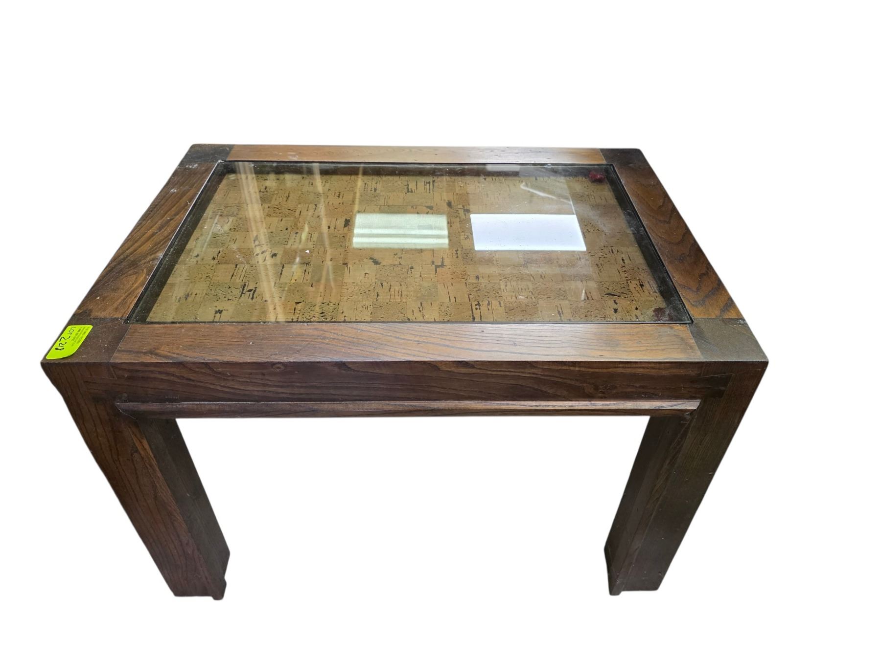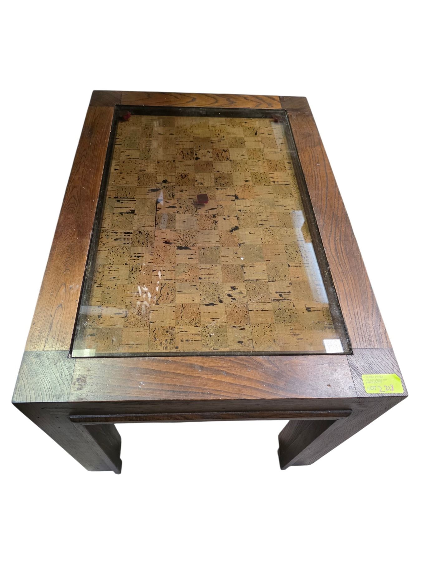 Wood End Table with Glass Top * 20" x 20' x 19" tall * Companion Piece to lot 2219 & 2217. Contents not included.