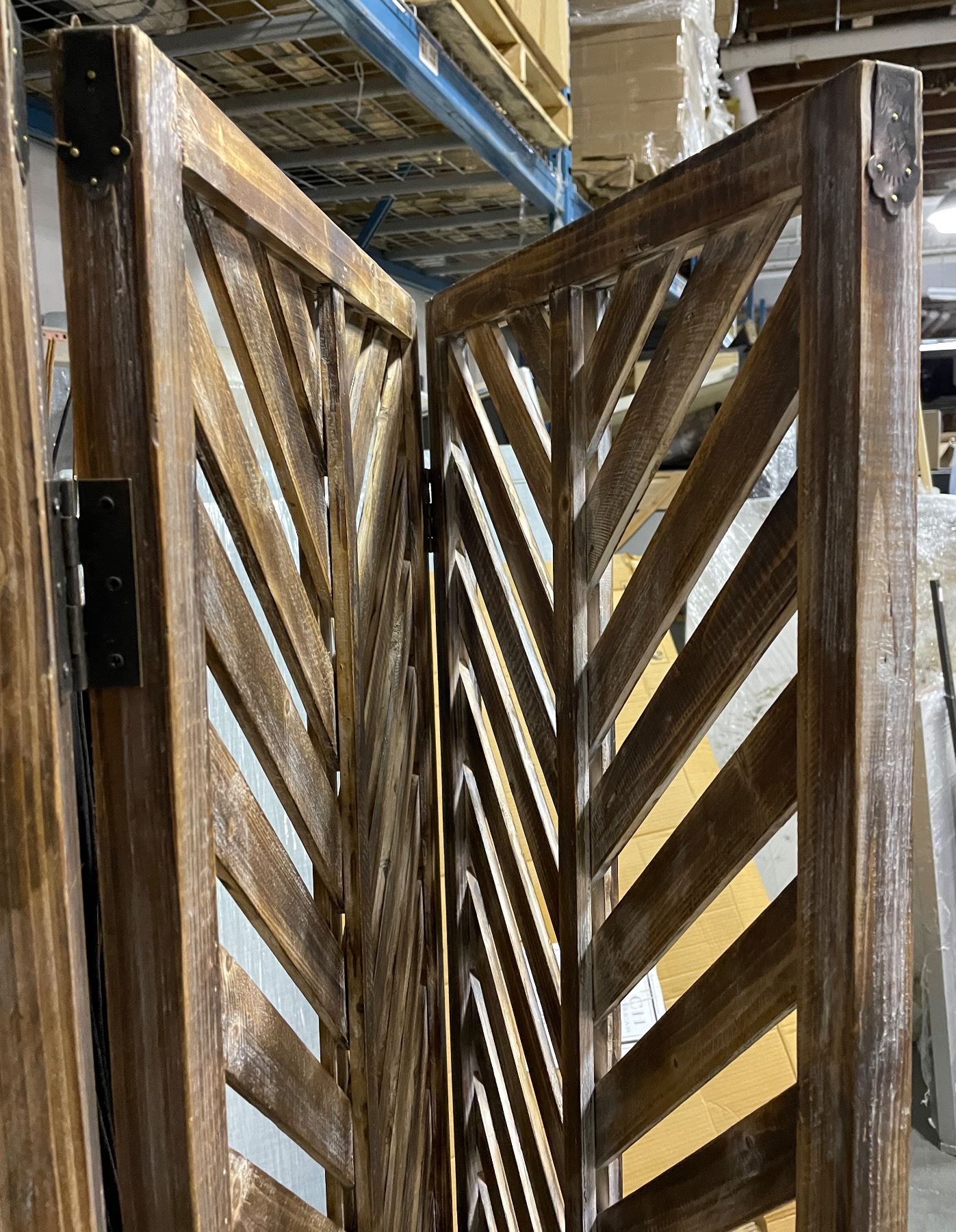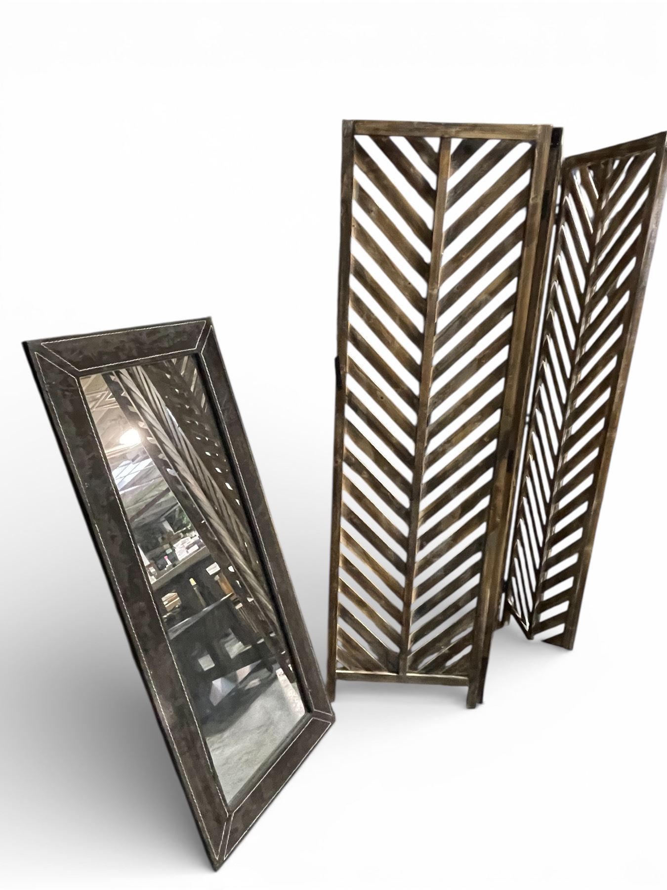 Wood Folding Screen Panels and Wall Mirror