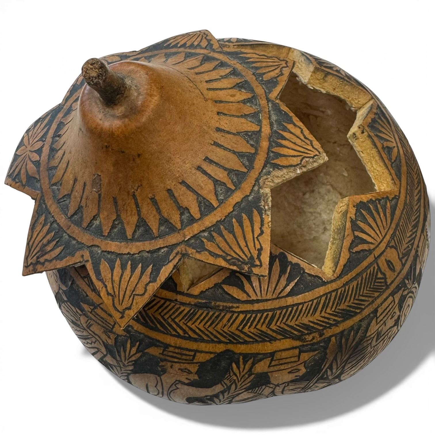 Wood Ukrainian Candelabra & Lidded Peruvian Bowl