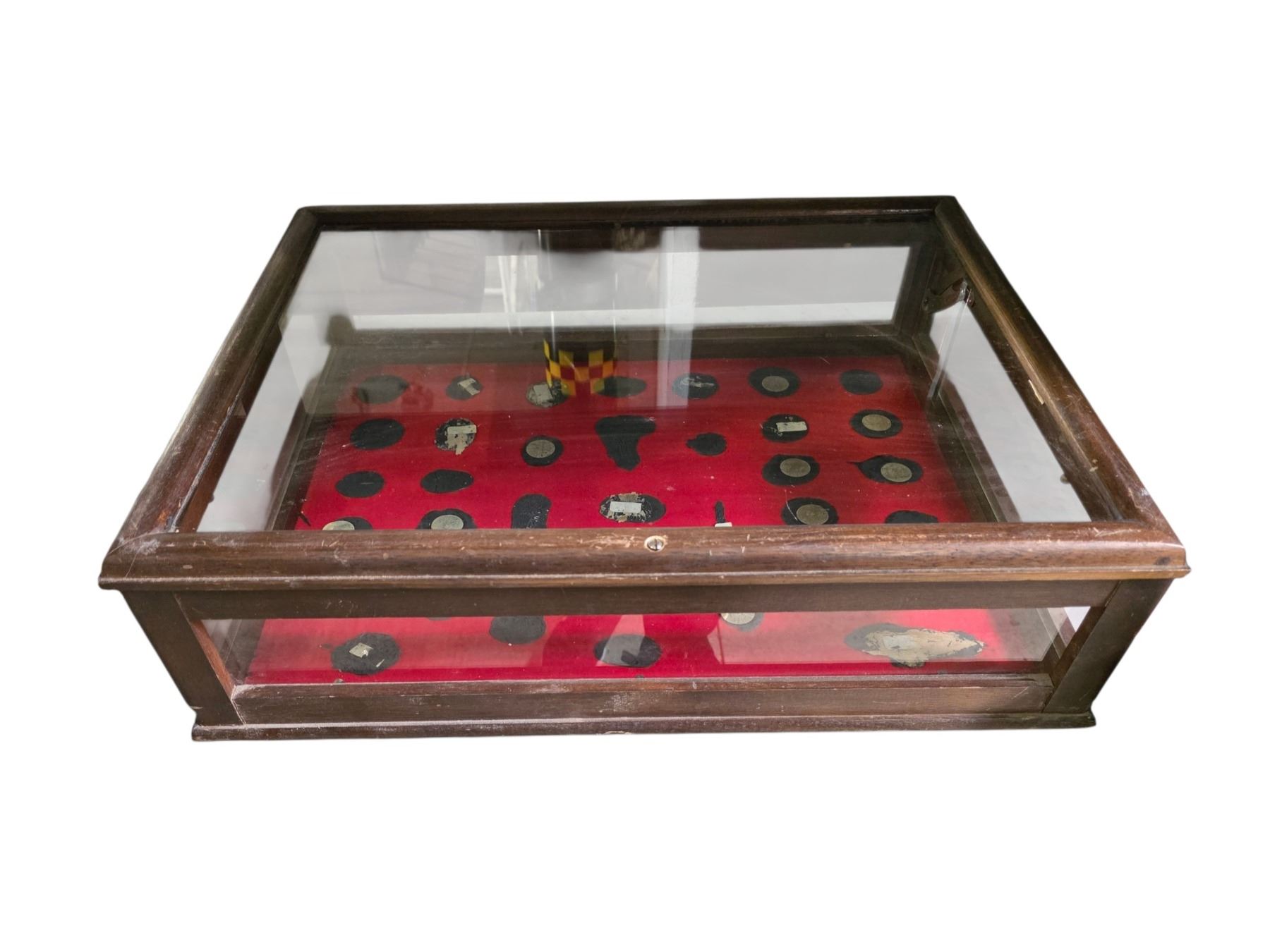 Wooden Display Case with Glass Panel, H6" x W22.5" x 17"