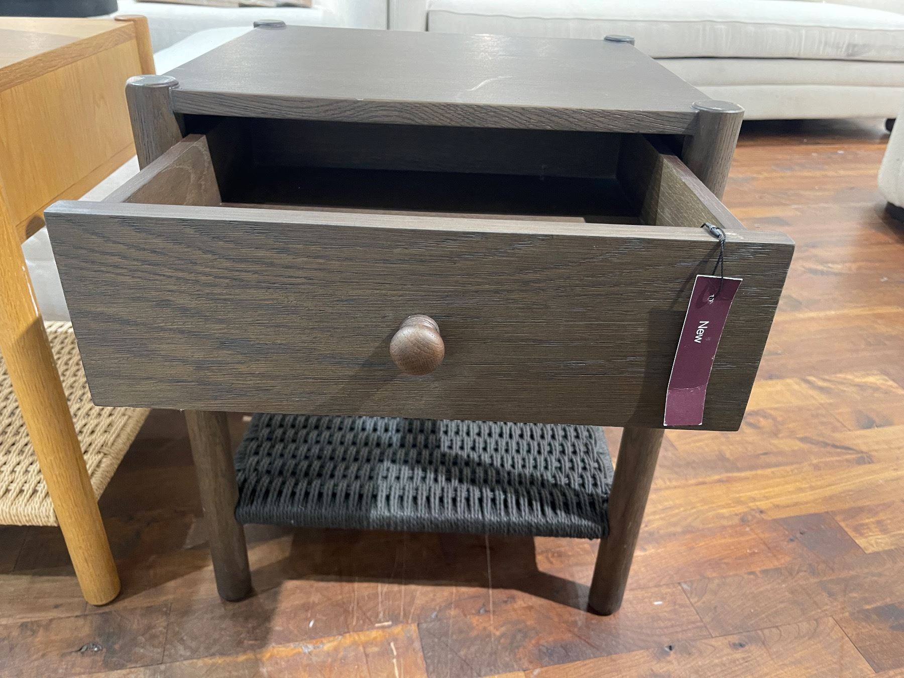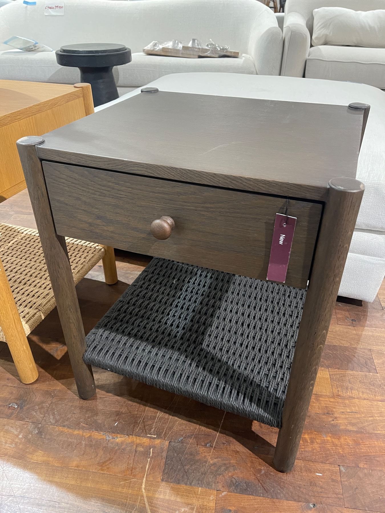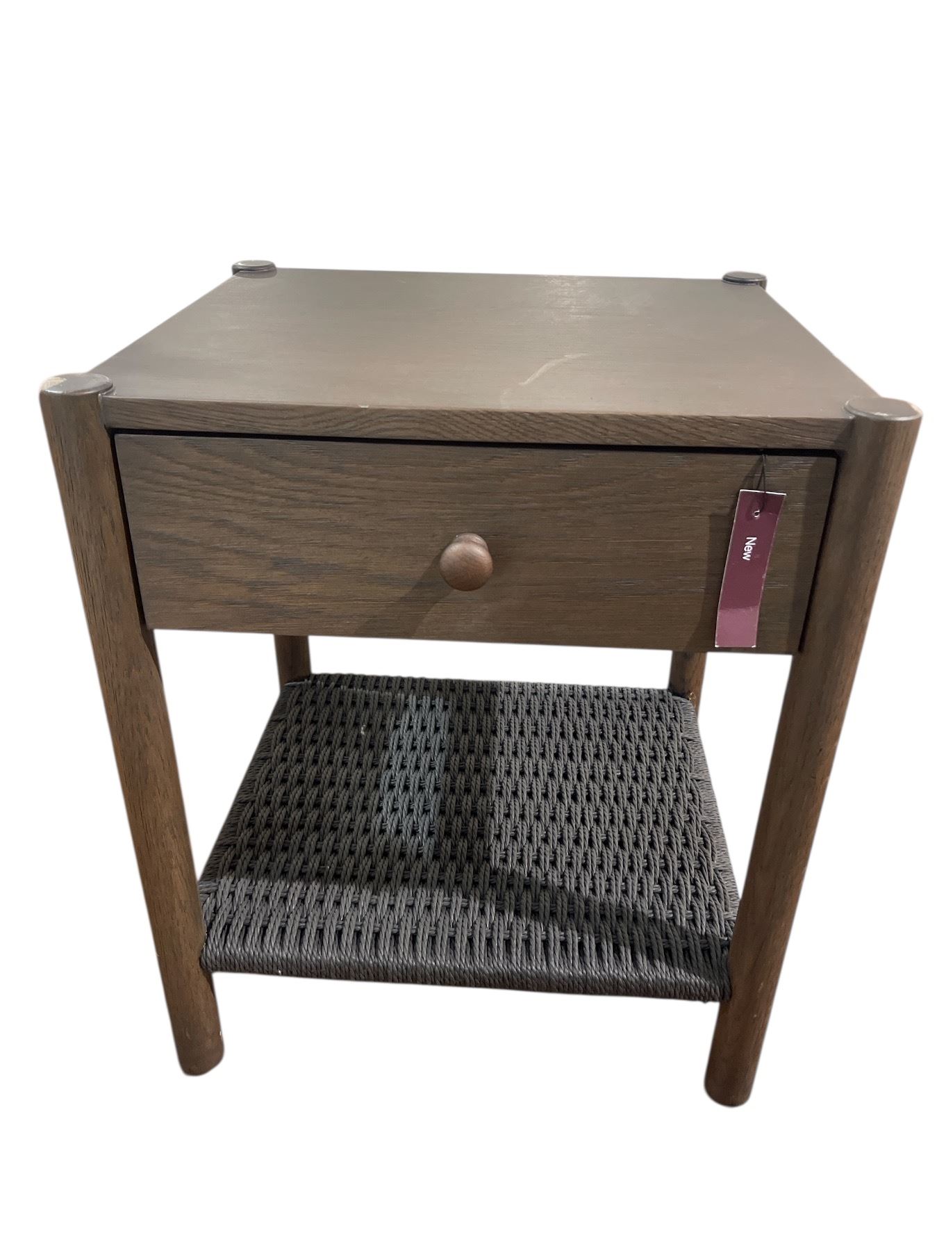 Wooden Nightstand / Side Table with Drawer and Woven Lower Shelf - 17.5" L x 19" W x 24" H