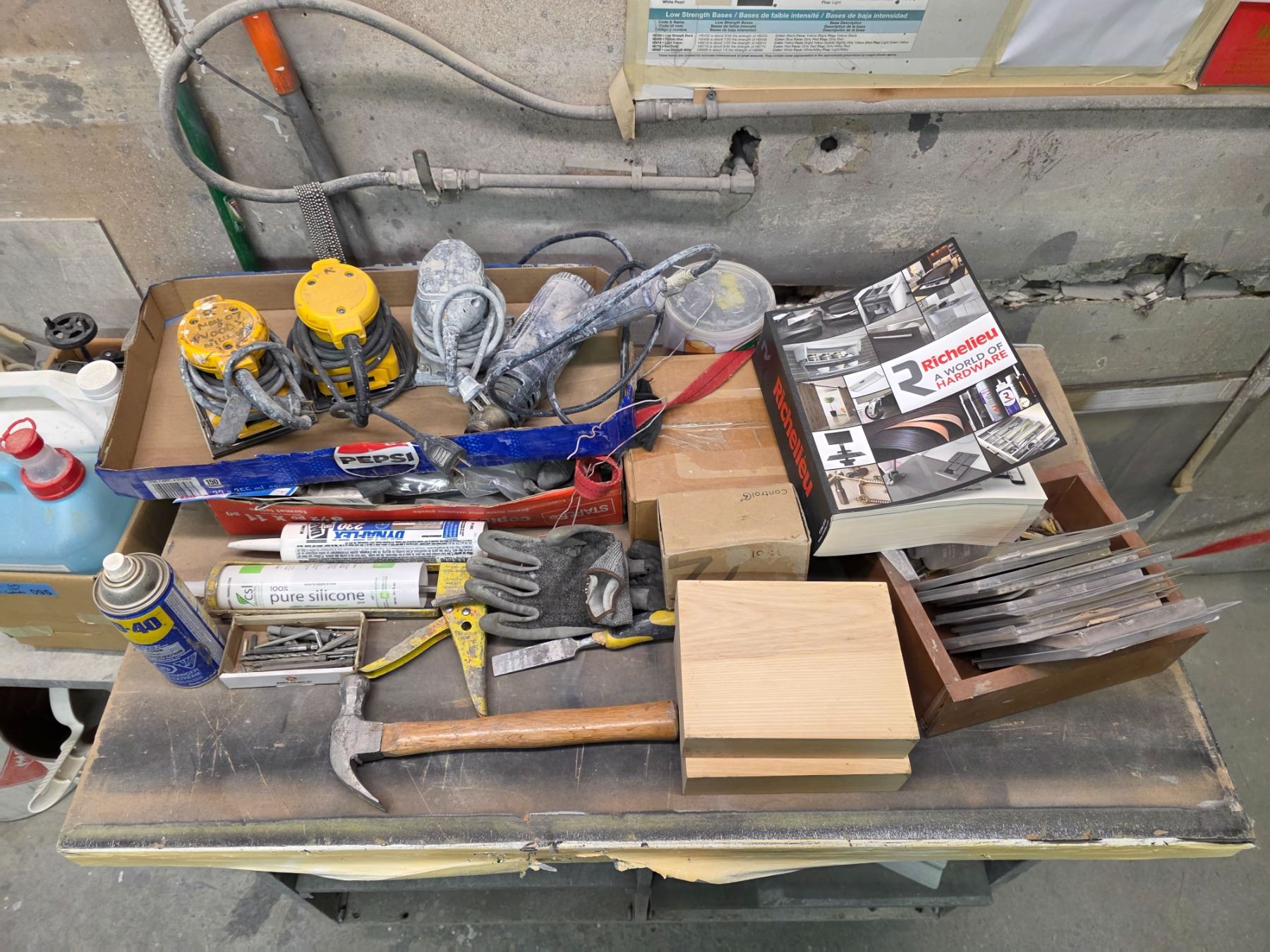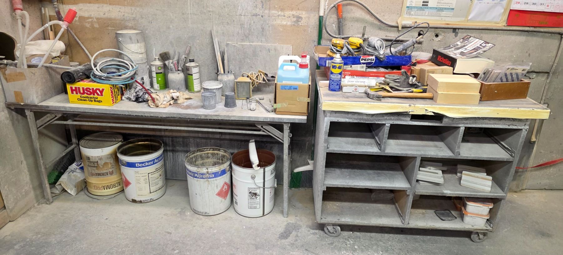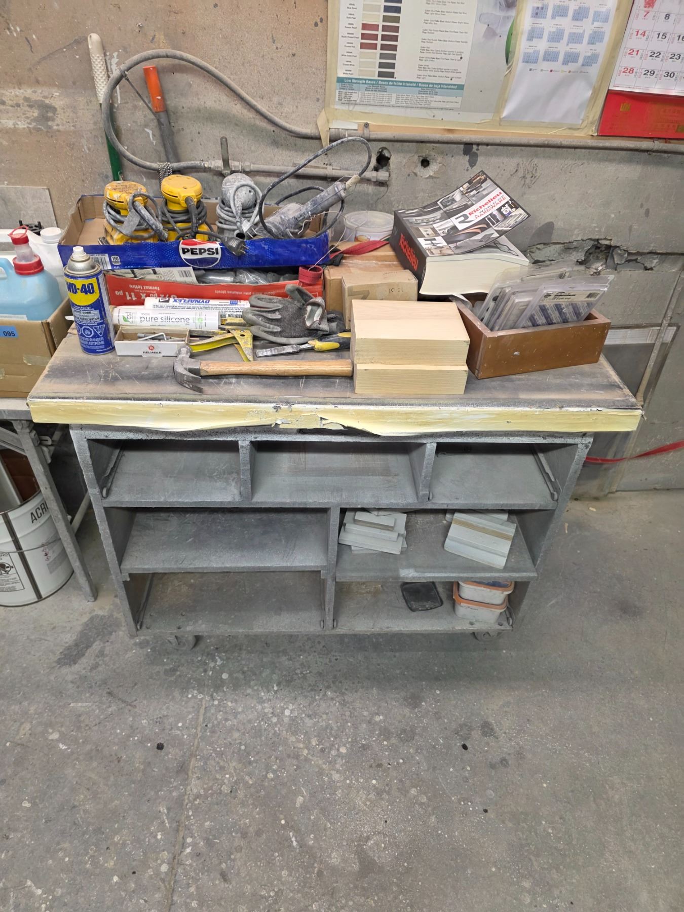 Workbench & Dolly w/ contents - Includes sanders, heat gun, screw caps, etc.