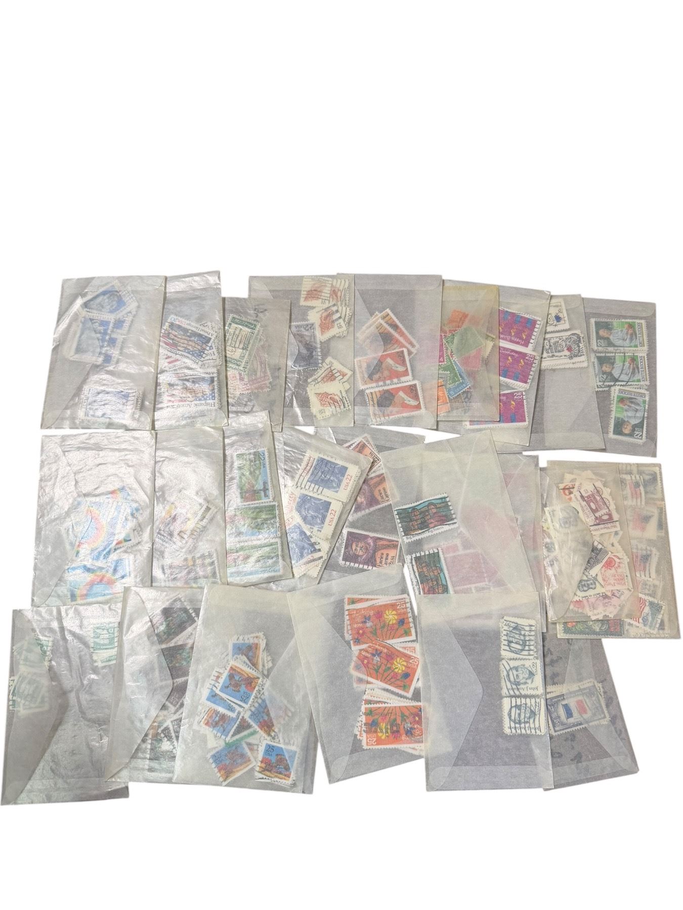 Worldwide Stamp Collections in Envelopes - France, Greece, Enrico Caruso, Jean Baptiste, Etc.