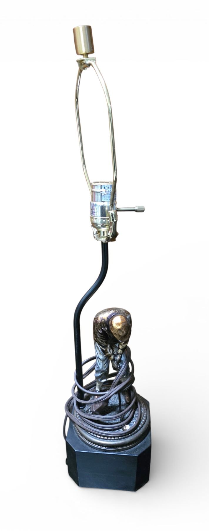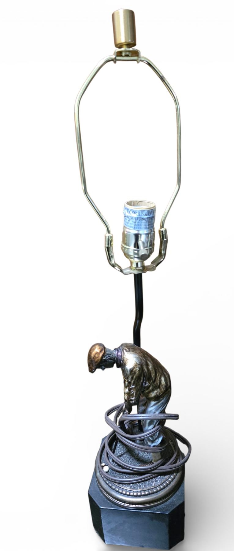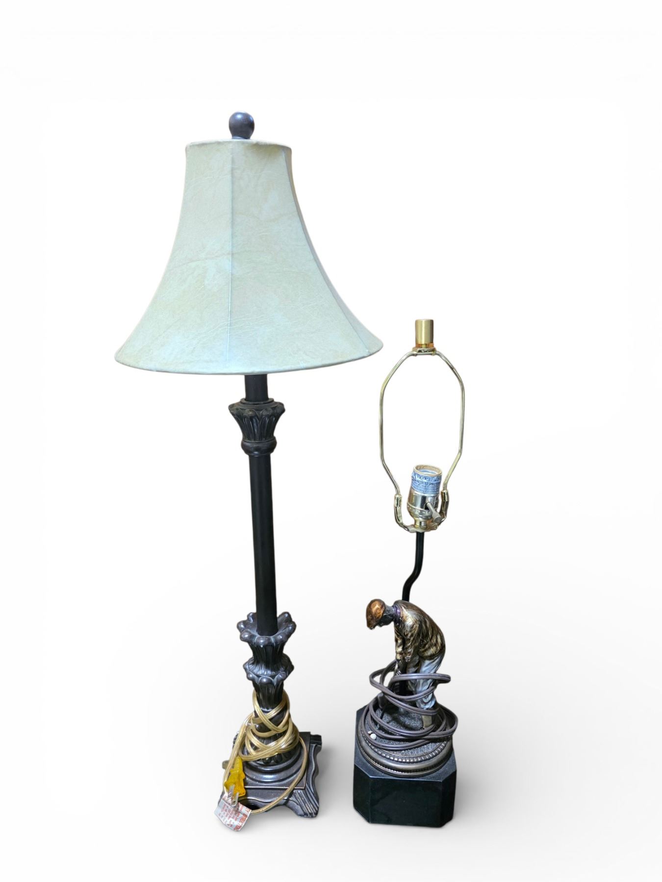 Wrought Iron Table Lamp (H31") and Figural Golfer Table Lamp (H23")
