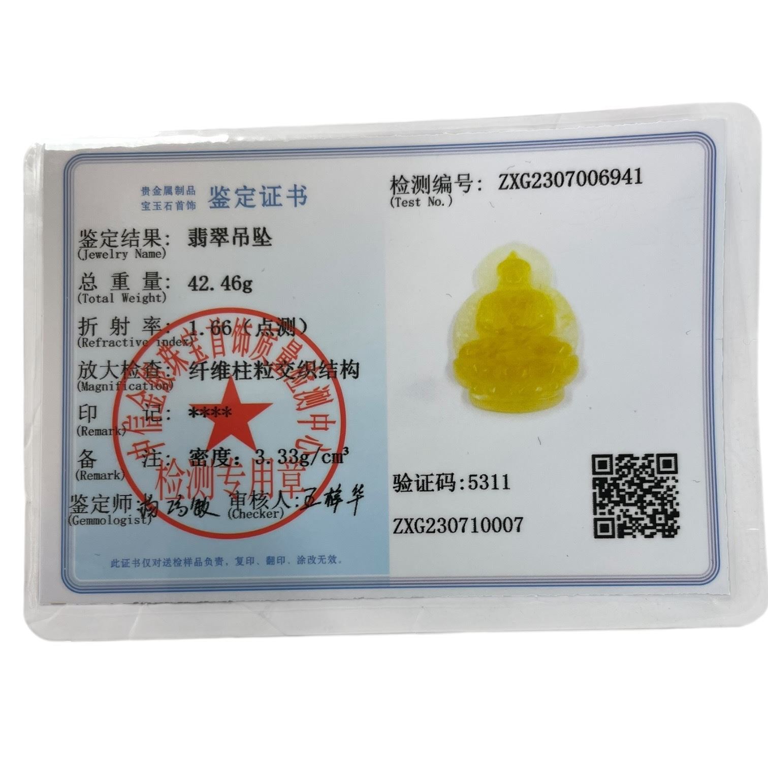 Yellow Gemstone "Goddess of Compassion" Pendant with Certificate of Authenticity (46 x 74mm 42.46 grams)
