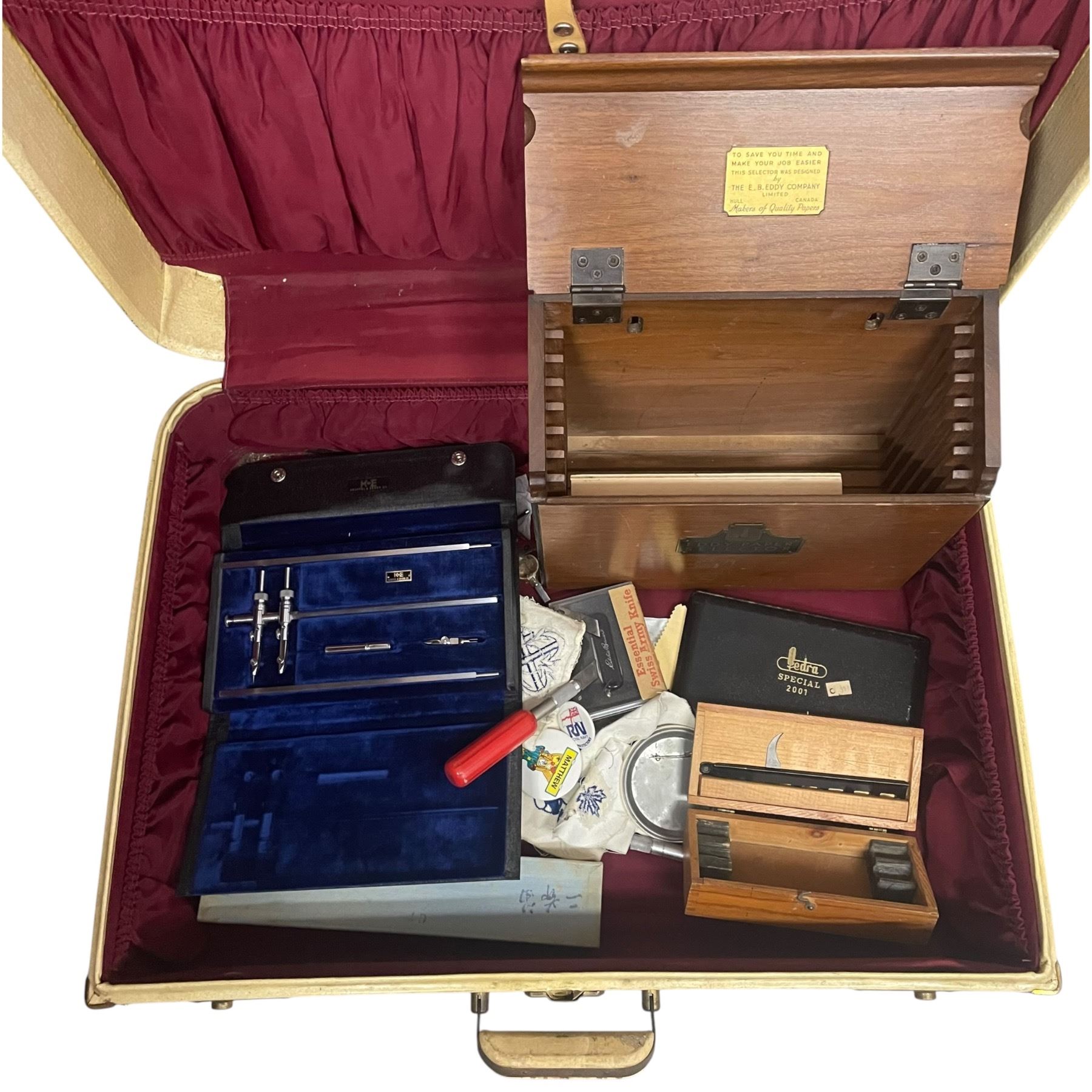 Yellow Suitcase and Contents: Drafting Toolsm, Pocket Swiss Army Knife and More