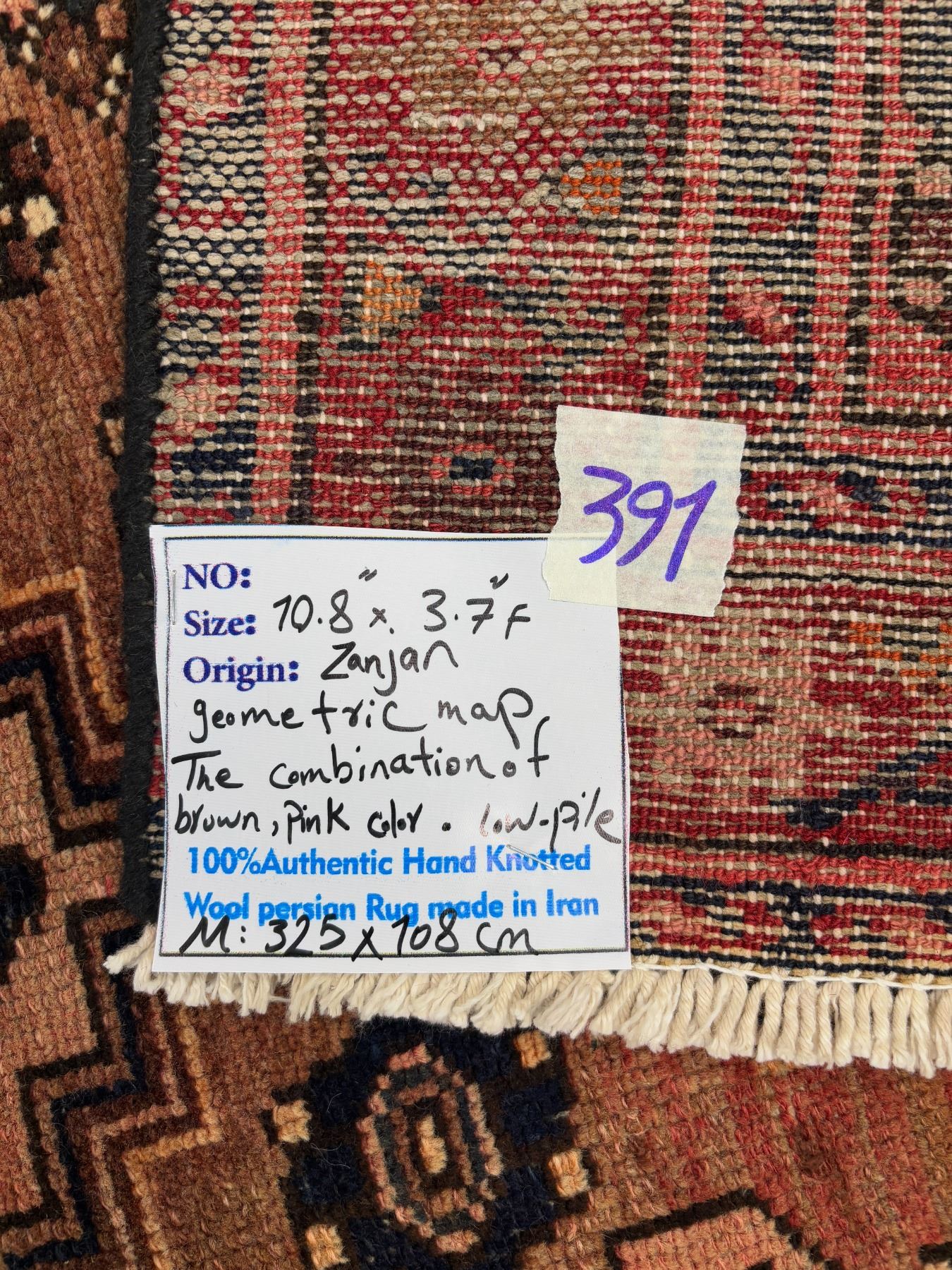 Zanjan - 100% Authentic Hand Knotted Wool Persian Rug - Handmade in Iran - 10.8" x 3.7" ft - No: 120