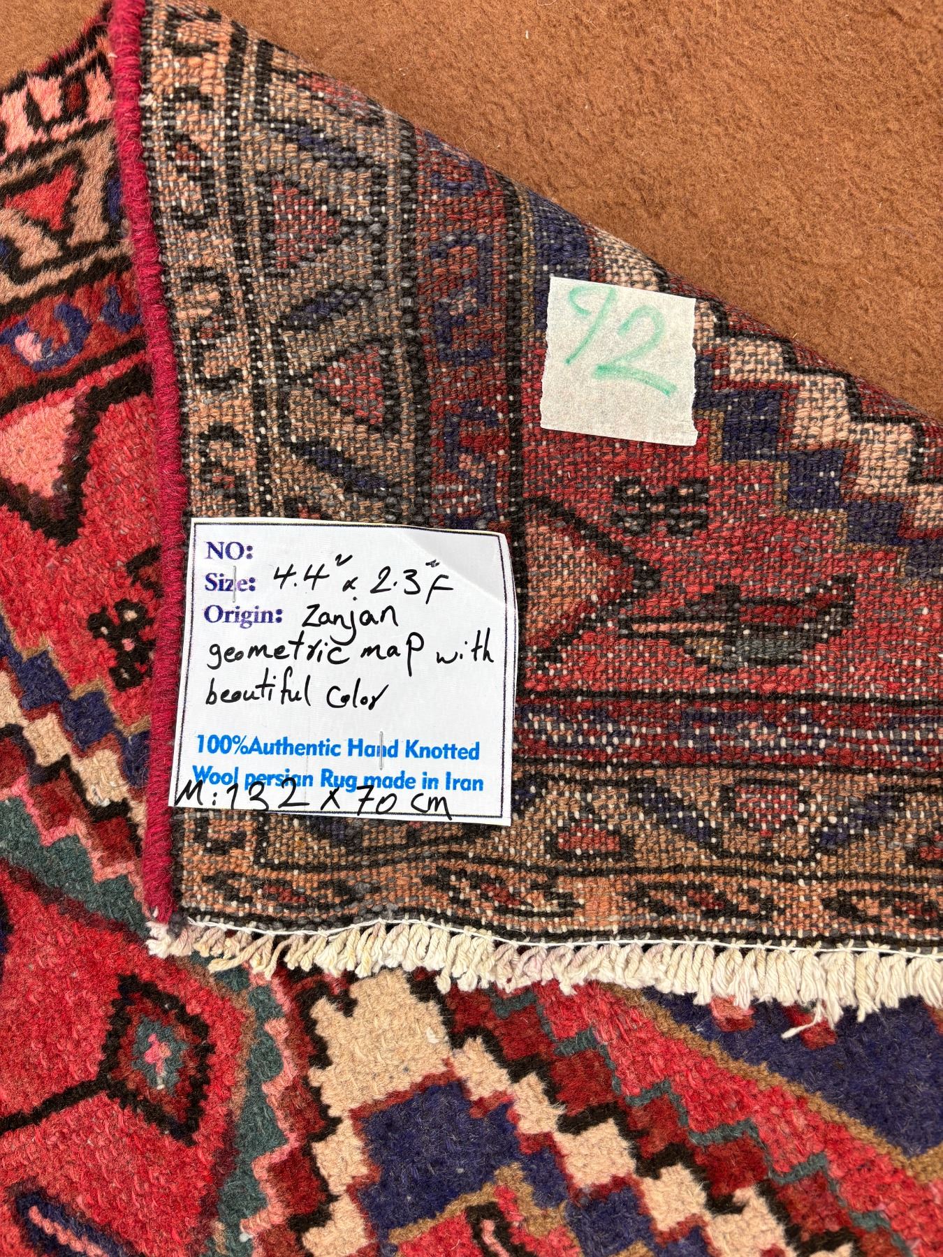 Zanjan - 100% Authentic Hand Knotted Wool Persian Rug - Handmade in Iran - 4.4" x 2.3 " ft - No: 110