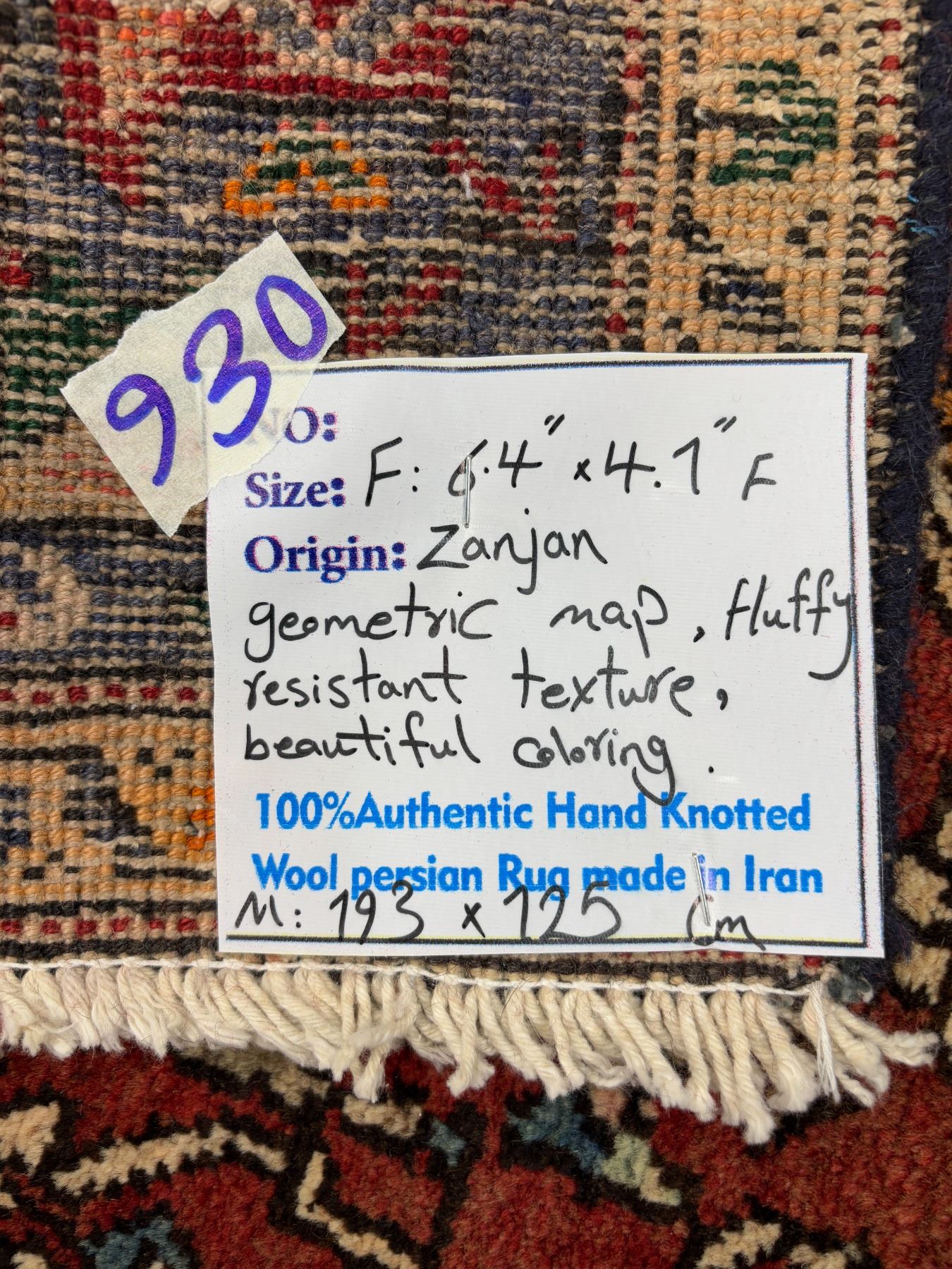 Zanjan - 100% Authentic Hand Knotted Wool Persian Rug - Handmade in Iran - 6.4" x 4.1" ft - No: 116